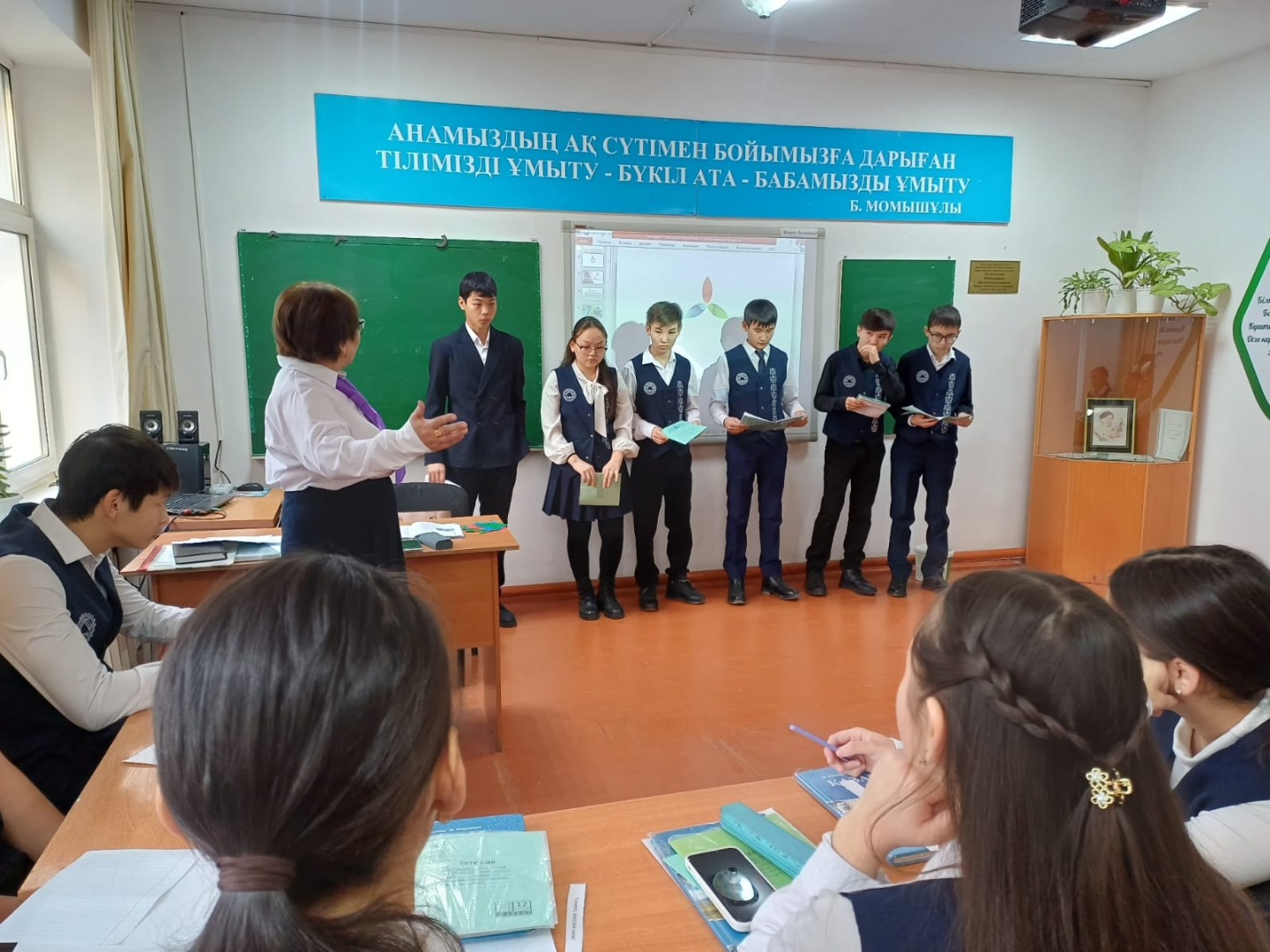 18 қараша күні апталық аясында 9 «Б» сыныбында қазақ тілінен «ЭКСПО-2017.Құрмалас сөйлем» тақырыбында Айтмурзакова Нургуль Джумагазыновна ашық сабақ өткізді. Сабақ барысында мұғалім оқушыларға ЭКСПО көрмелерінің тарихымен таныстырып, оның Қазақстан үшін маңызы туралы толық мәлімет берді. Заманауи әдіс-тәсілдерін , ЖИ мүмкіндігін тиімді қолдану арқылы оқушылардың сыни ойлау, талдау, топта жұмыс істеу қабілеттерін дамытуды мақсат етті. Балалар ЖИ көмегімен мәтіндегі ойды ықшамдап тезис, аннотация жазып, өз ойларын дәлелдеп, жаһандық мәселерге (энергия тапшылығы, экология) бейжай қарамайтынын жеткізді. Сабақ жоғары деңгейде өткізілді.
