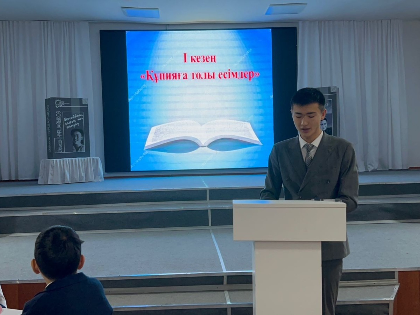 "Тіл мен рух" жасанды интеллект адамдық құндылықтар айнасы" тақырыбындағы қазақ тілі мен әдебиеті әдістемелік бірлестік апталығы аясында қазақ тілі мен әдебиеті пәні мұғалімдері Калмакбаева Г.Е. мен Нұрсапанов Е.Н. 6-сыныптар арасында "Біртұтас тәрбие" бағдарламасының мазмұнына сәйкес "Ұшқыр ой алаңы" жобасы бойынша Абай Құнанбайұлының 180 жылдығына орай "Абайды оқы, таңырқа!" зияткерлік ойынын өткізді. Ойын 5 кезеңнен тұрды.Әр кезеңде Абай Құнанбайұлының өмірінің қызықты кезеңдері мен өлеңдерінен әр түрлі сұрақтар қойылды. Оқушылар әр кезеңдегі сұрақтарға қызығушылықпен жауап берді. Ойын соңында ақынның "Көзімнің қарасы" әні орындалды.Оқушылар ақын Абай туралы мол мәлімет алып, білімдерін толықтырды.