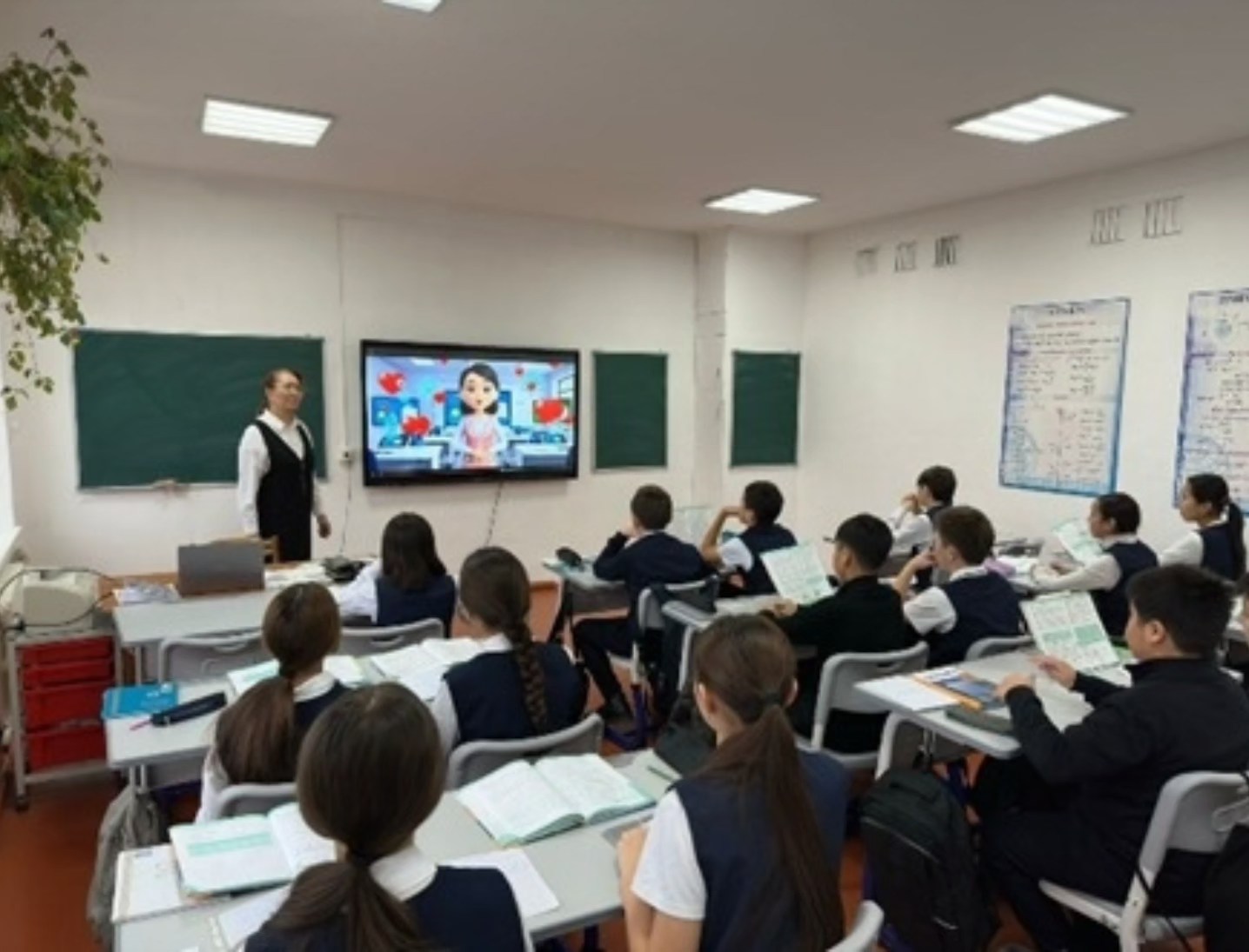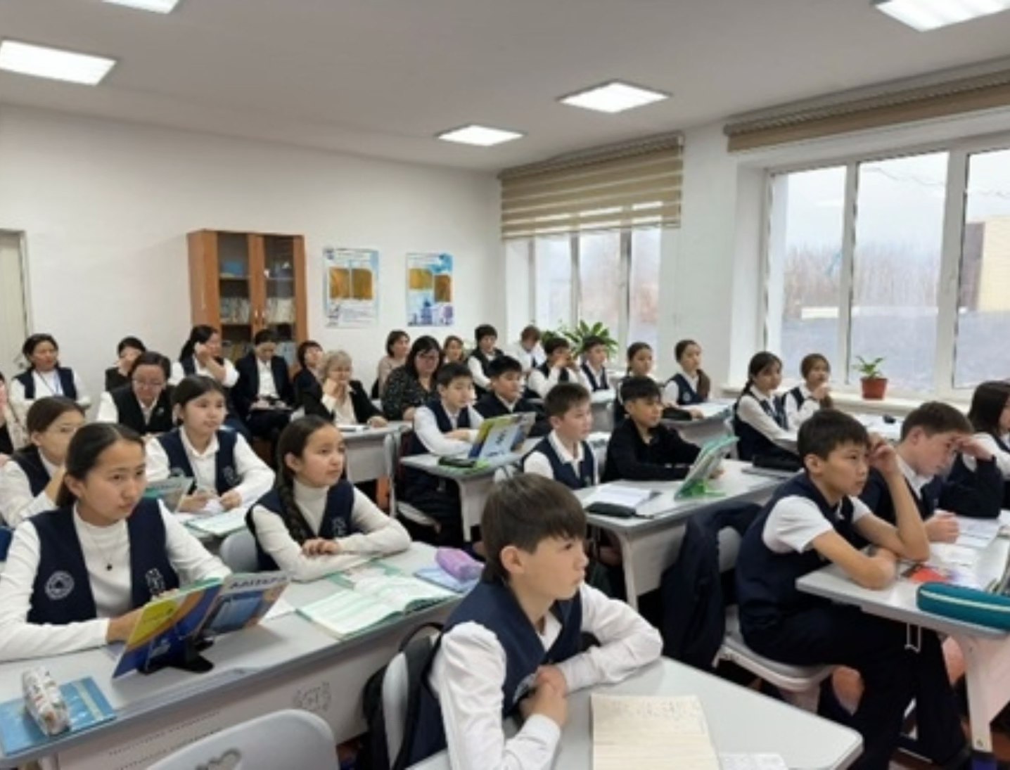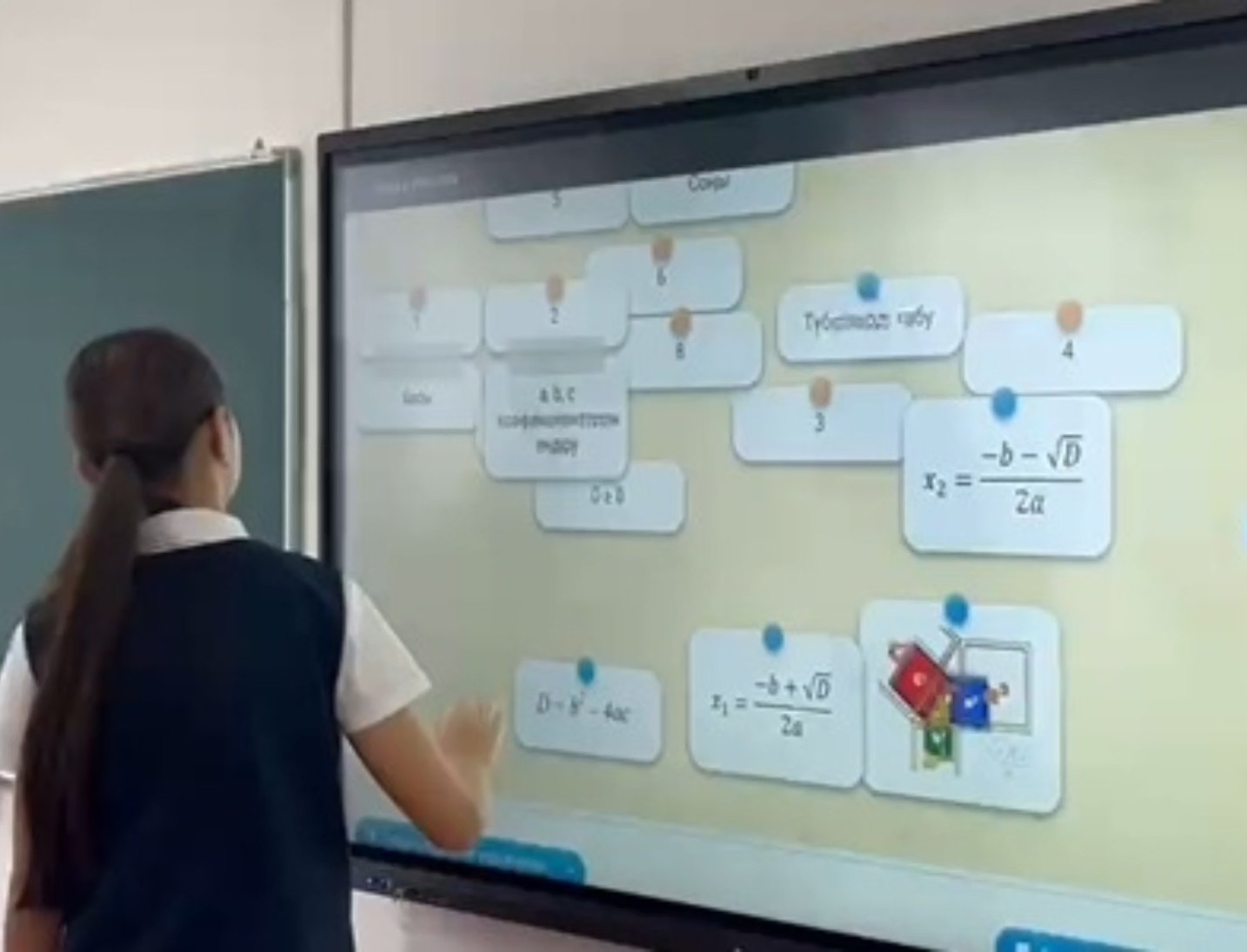 Апталық аясында математика пәні мұғалімі Г.Ж.Догалбаева 8 «Д» сыныбында «Квадрат теңдеуді шешу» тақырыбында ашық сабақ өткізді.Сабақ барысында мұғалім «Сөйлемді жалғастыр», «Ой қозғау», «Ойлан – жұптас» әдістерін қолданып, оқушылардың тақырыпты меңгеруіне ықпал етті. Оқушылардың сергіп, назарын шоғырландыру мақсатында көзге арналған сергіту сәті де жасанды интеллект көмегімен ұйымдастырылды. Сабақ соңында білім деңгейі қысқа тест жұмысы «көршіңді тексер» әдісімен панельге көрсетілген кілт арқылы тексеріліп бағаланды. Сабақ «Бағдаршам» әдісі арқылы рефлексиямен аяқталды.