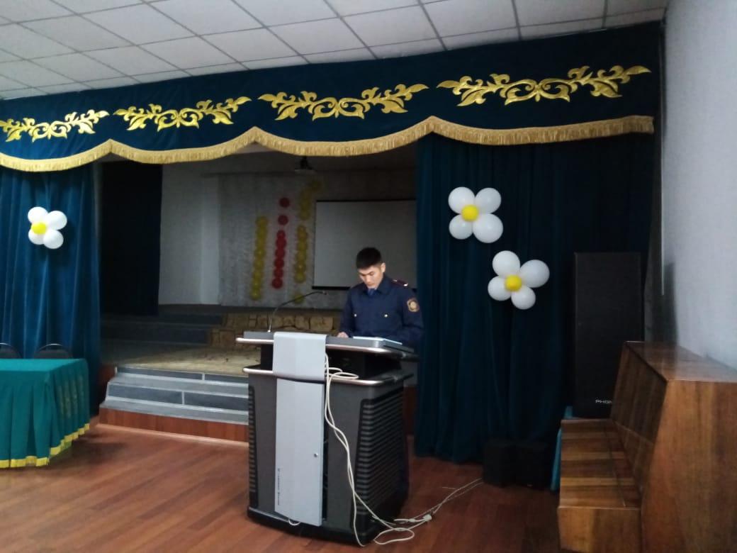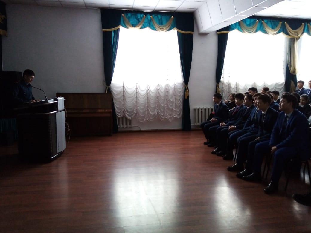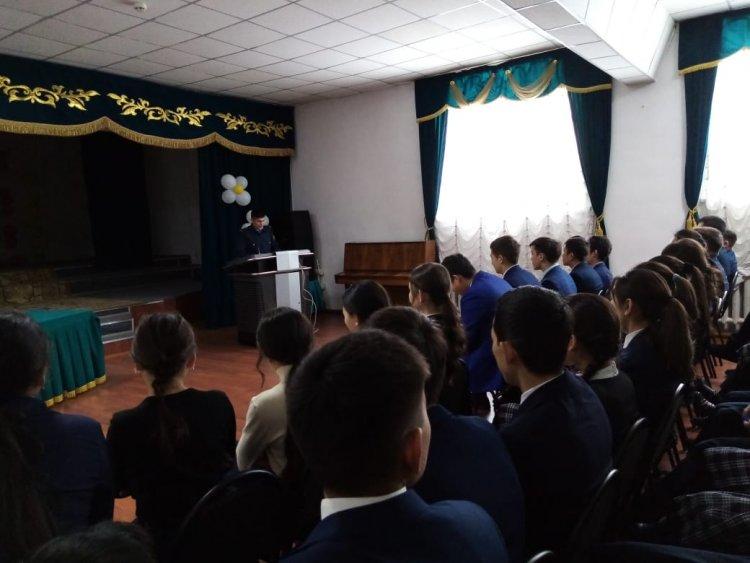 2020 жылдың 13 қаңтар күні мектеп инспекторы Р.Муратов «Нашақорлық – ғасыр дерті» тақырыбында 9-11-сынып оқушыларымен әңгіме жүргізді. Әңгіме барысында оқушыларға аталған тақырып аясында сұрақтар қойылып, шынайы өмірден алынған мысалдар келтірілді. Оқушылар қоғамдық қасіреттің алдын-алу жөнінде біршама пайдалы кеңестер алды.