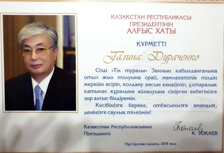 Бүгінгі дарынды жастар – өркениеттің қозғаушы күші. Соның бірі –мектебіміздің түлегі Дураченко Галина Сергеевна. Ол мектепте оқып жүрген кезден бастап-ақ мемлекеттік тілден түрлі сайыстарға қатысып, республикалық, халықаралық зияткерлік олимпиадаларының жеңімпазы атанған.