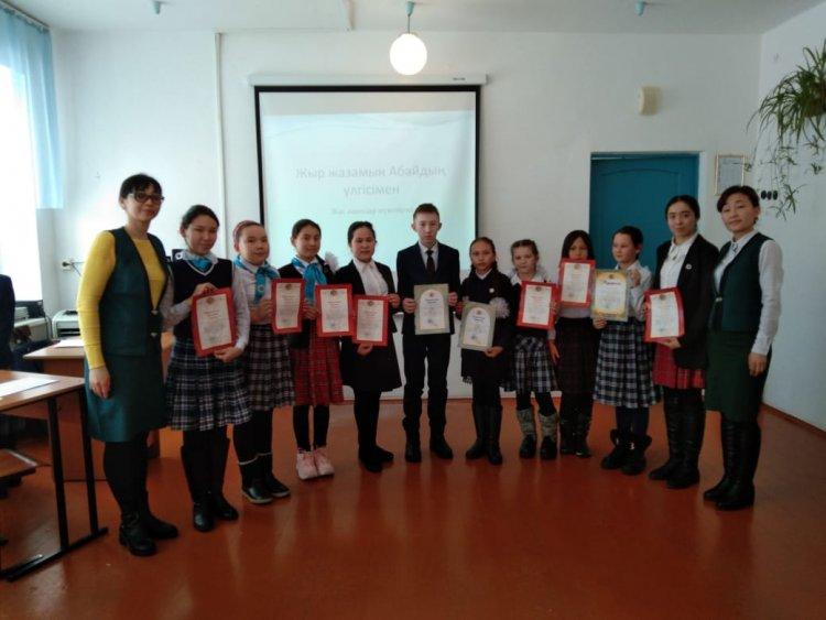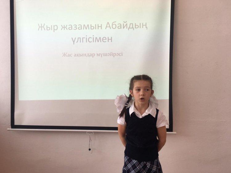 2020 жылдың 20 ақпаны күні ұлы ақын Абай Құнанбаевтың 175 жылдық мерейтойы онкүндігінің аясында қазақ тілі мен әдебиеті пәні мұғалімі А.Қ.Байдельдинованың және орыс тілі мен әдебиеті пәнінің мұғалімі Г.Т.Баяндинованың ұйымдастыруымен 5-11-сынып оқушылары арасында «Жыр жазамын Абайдың үлгісімен» атты жас ақындар мүшәйрасы өтті. Аталған шараға оқушылар белсене қатысып, ақындық жағынан сынға түсті. Нәтижесінде 7 «Б» сынып оқушысы Раимхан Нариман ІІІ орынды, 5«А» сынып оқушысы Кадырханова Милана ІІ орынды және 6 «Г» сынып оқушысы Кумарбек Еркежан І жүлделі орынды жеңіп алды.