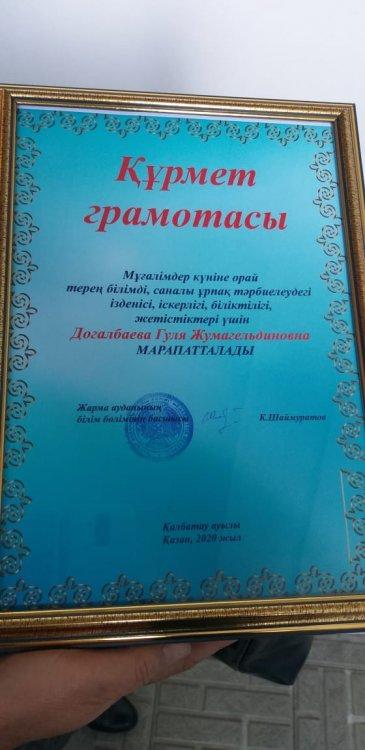 2020 жылдың 2 қазан күні «Георгиевка орта мектебі» КММ-де ұстаздардың төл меркесіне орай, онлайн салтанатты жиын өткізілді. Жиында мектеп директоры Даутова А.Ж. ұстаздарды мейраммен құттықтап, педагогикалық еңбек жолында шәкірттеріне жақсы тәрбие мен білім беруде қосқан үлесі үшін жетістікке жеткен мұғалімдерді алғыс хатпен марапаттады. Сондай-ақ, математика пәнінің мұғалімі Г.Ж.Догалбаева «Жарма аудандық білім бөлімі» ММ басшысы Қ.Р. Шаймуратовтың Құрмет грамотасымен марапатталды. Барша ұстаздар қауымын және марапат иелерін төл мерекелеріңізбен құттықтаймыз!