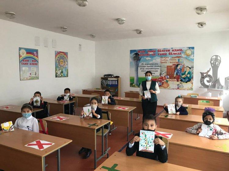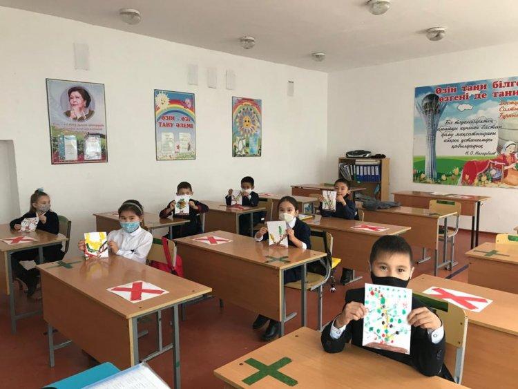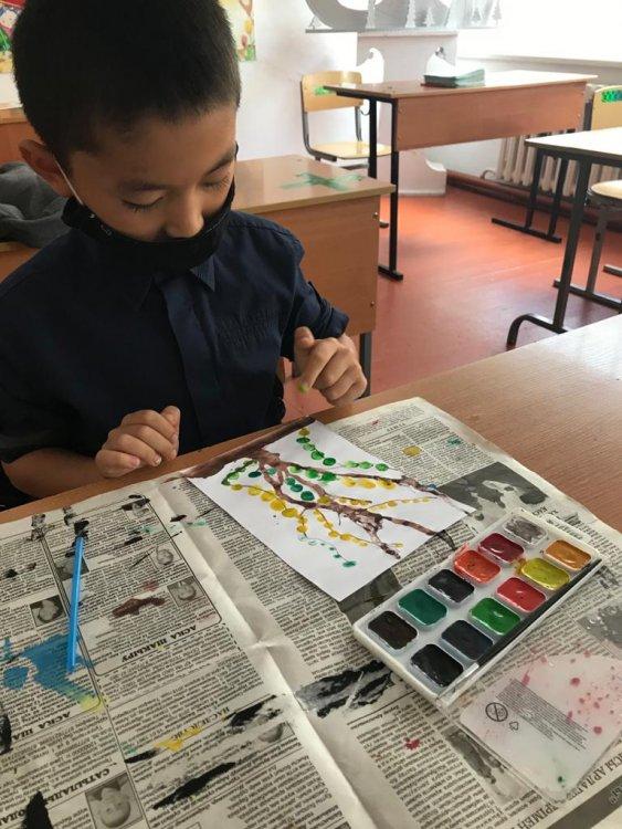 2«А»,«Ә»,«Г» және 3«Ә», 4«Б» «Кезекші сынып» оқушылары мектеп психологтарының ұйымдастыруымен өтіп жатқан «Біз біргеміз, барлығын жеңеміз!» апталығында «Саусақпен, алақанмен, жұдырықпен сурет салу» графикасын және «Жіп» графикасын қолданды. Арт-терапияның бұл әдістері баланың қиялын, талғамын, қолдың ұсақ моторикасын дамытады.