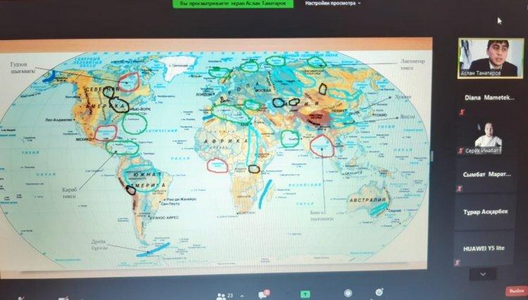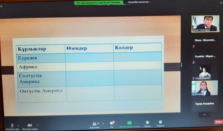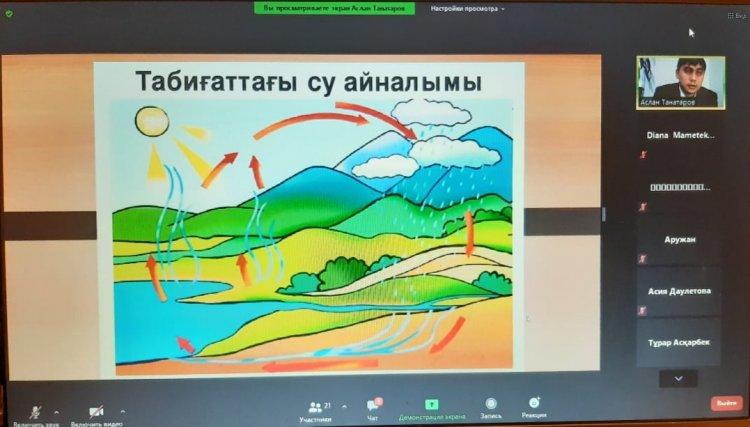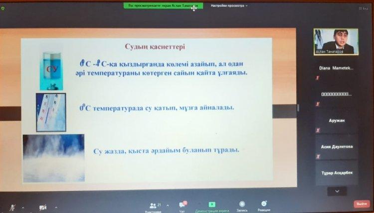 7 декабря 2020 года в КГУ «Георгиевская средняя школа» в режиме онлайн началась неделя учителей естественного цикла. Танатаров Аслан Заманбекович провёл урок географии в 7 «В» классе на тему «Гидросфера және оның құрамдас бөліктері». Урок прошёл интересно. При объяснении темы учитель использовал презентацию, были предоставлены интересные факты, подобраны задания для учащихся при закреплении темы.