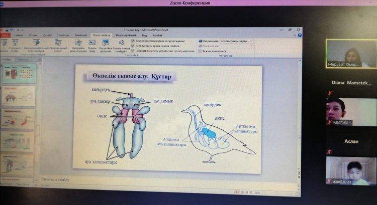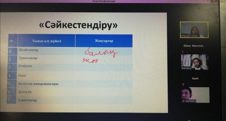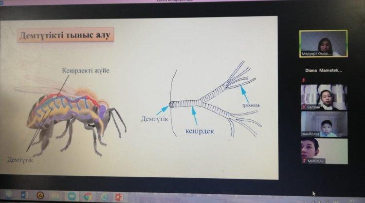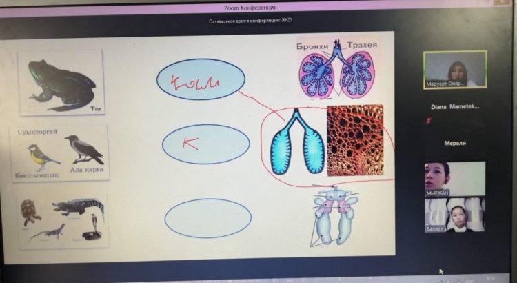 11 декабря 2020 года в КГУ «Георгиевская средняя школа» в рамках недели учителей естественного цикла в режиме онлайн Омарова Меруерт Батырхановна провела урок биологии в 7 «Ә» классе на тему «Омыртқасыз және омыртқалы жануарлардың тыныс алу мүшелері». На уроке учащиеся познакомились с новой темой, решали логические задачи, выполняли задания на соответствие, работали в сессионном зале.