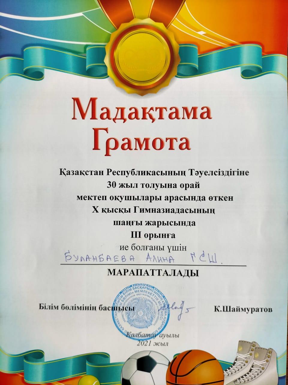 2021 жылдың 10 ақпан күні Тәуелсіздіктің 30 жылдығына орай мектеп оқушылары арасында Х қысқы Гимназиадасының аудандық шаңғы жарысы өтті. Аталған жарыста «Георгиевка орта мектебі» КММ-нің 9-сынып оқушылары Буланбаева Алина ІІІ орынды, Рамазан Қарақат жүлделі І орынға ие болып, облыстық кезеңге өтті.