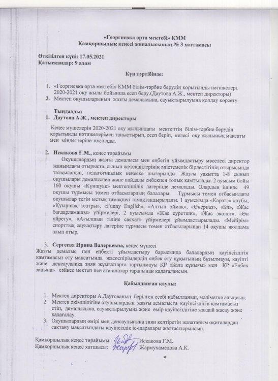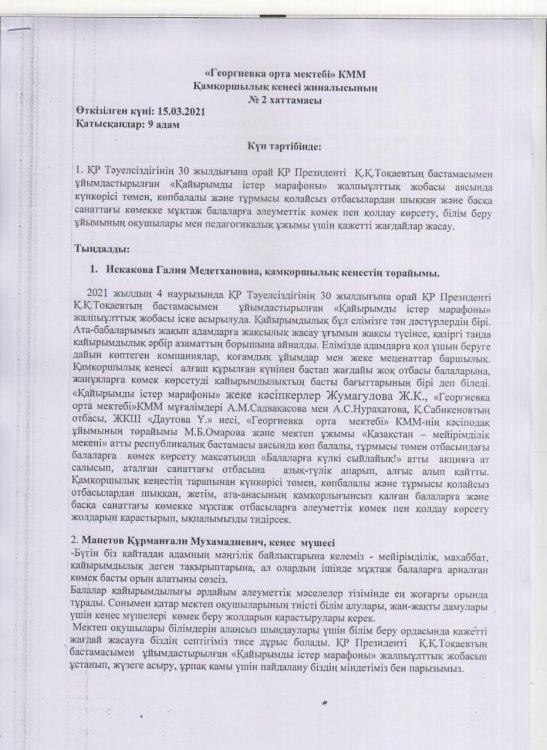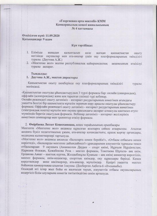 Қамқоршылық кеңесі жиналысының хаттамалары » «Георгиевка орта мектебі» КММ