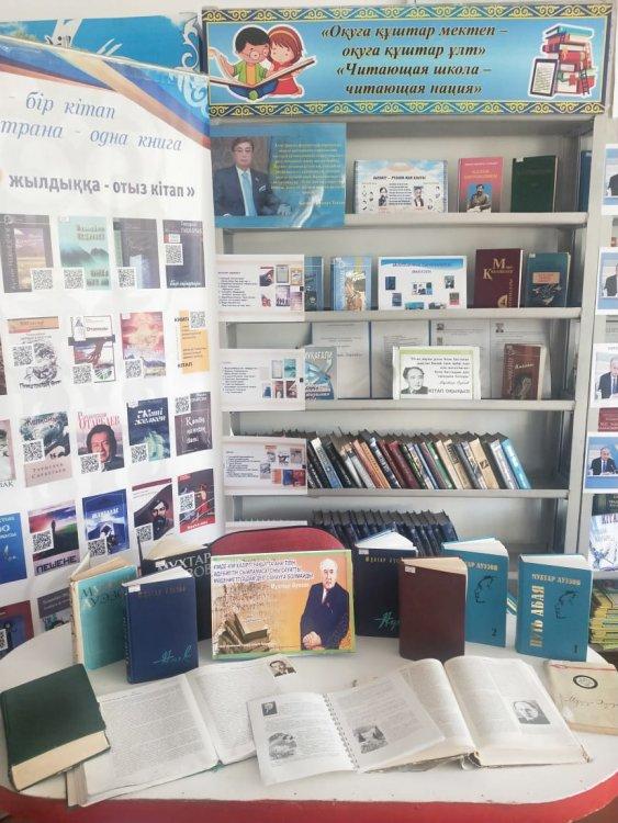 2021 жылдың 17 қыркүйек күні мектеп кітапханашысы Б.Т.Ержанова Ұлы жазушы М.О.Әуезовтің шығармашылығына арналған «Сен Әуезовті танисың ба?» атты көрме ұйымдастырды. Көрмеге жазушының танымал әңгімелері мен жазушы жайлы естеліктер қойылды. Сол арқылы оқушыларды М.Әуезов шығармаларымен терең танысып, құрмет тұтуға, әңгімелерін оқуға шақырды.