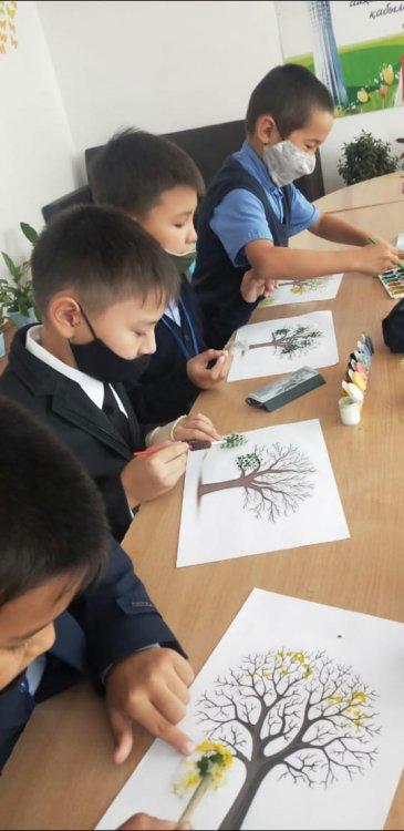 «Георгиевка орта мектебі» КММ –де 18 қазан күні мектеп психологтары А.Кокиева мен Б.Кабидоллаева өзіне деген сенімділікті арттыру, өзін-өзі көрсету, шығармашылық қиялы және шығармашылық ойлауды дамыту мақсатында 4«в» сынып оқушыларымен сурет салудың дәстүрлі емес техникасын қолдана отырып «Күздің ғажап әлемі» тақырыбында психологиялық жұмыс жүргізді.