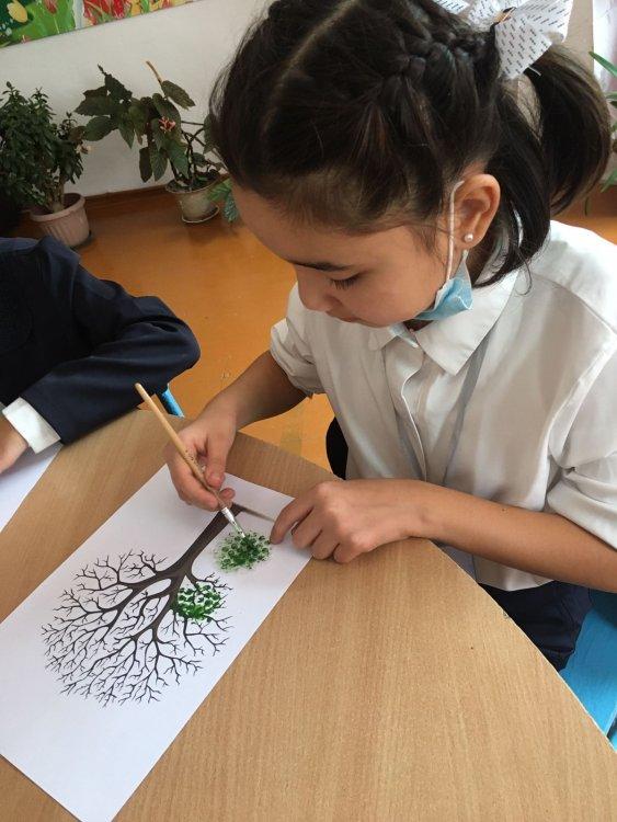 Жұмыс барысында оқушылар бірлесіп, түрлі құралдармен, тәсілдермен танысып, эстетикалық сезімі дамыды. Түстердің алуандығын ұғынды. Дәстүрлі емес тәсілді пайдалану кезінде оқушылардың шығармашылығы дамып, жеке және ұжыммен жұмыс жасауды , жұмысты соңына дейін аяқтауды үйренді. Балалардың қиялын, елестетуін, ойлауын, зейінін жетілдіріп,көру және саусақ маторикасын дамытты.