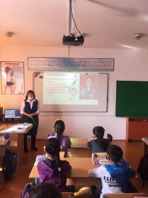Күміс көмей әнші, Қазақстанның, Кеңес Одағының халық әртісі, Халық қаһарманы,Тарлан сыйлығының иегері, қайталанбас ғажап дауыс иесі, ұлы әнші Роза Тәжібайқызы Бағланованың туғанына 100 жыл толуына орай мектеп кітапханашысы Ержанова Б.Т. 4-сынып оқушыларымен «Қазақ ән әлемінің падишасы Роза Бағланова» атты танымдық сағат өткізді.