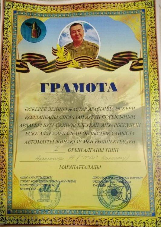 Ауған соғысының ардагері Бургажинов Тілеухан Ануарбекұлын еске алуға арналған ОБЛЫСТЫҚ САЙЫСТА "Георгиевка орта мектебі" КММ-нің 10-сынып оқушысы Рамазан Қарақат шалқадан жатып кеудені көтеруден ІІ орын алып, ардагердің отбасының арнайы сыйлығына ие болды. Аталған сайыста автоматты жинақтау мен бөлшектеуден 11-сынып оқушысы Арман Жанайым жүлделі І ОРЫНДЫ жеңіп алды. Марапат иелерін құттықтаймыз! Жетекшісі Рахимгалиев Д.М.