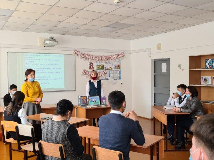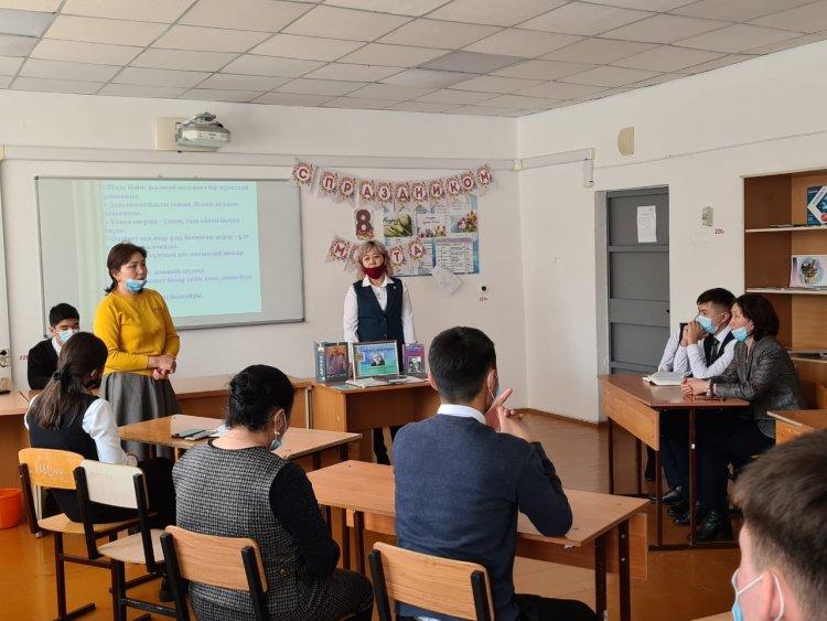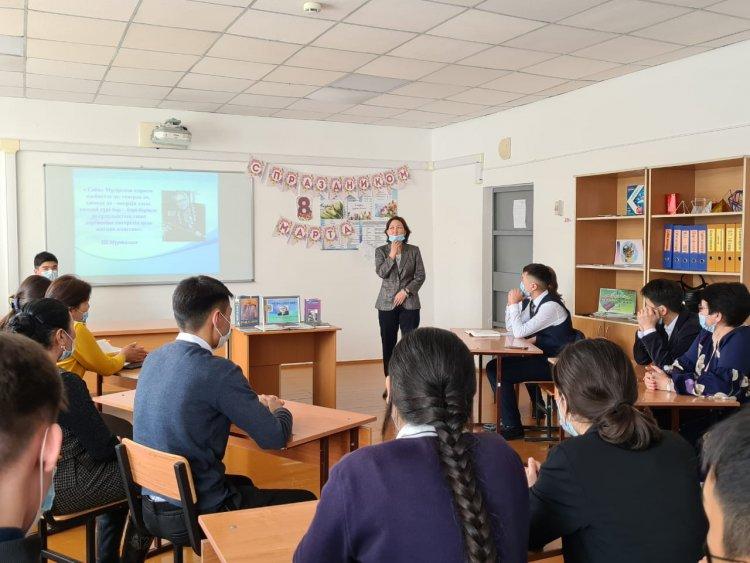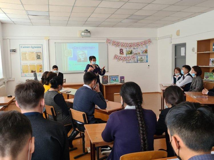 Мектеп кітапханашысы Б.Т.Ержанова мен сынып жетекшісі Г.А.Искакова "Оқуға құштар мектеп" жобасы аясында Ғ.Мүсіреповтің 120 жылдығына орай ''Сөз зергері" атты әдеби ой бөлісу өткізді. Шараға 10-сынып оқушылары мен аналары қатысып, жазушының "Ана" тақырыбына жазылған шығармаларын талқылап, кітап оқудың пайдасы туралы ойларын ортаға салды.