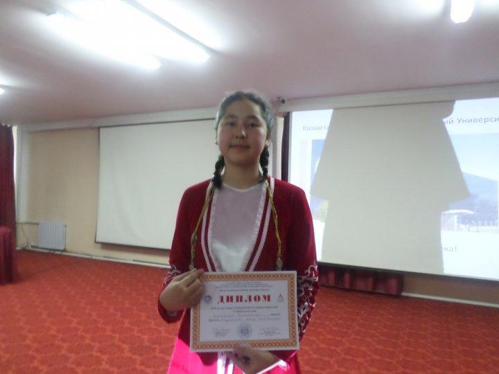 Ученица 10 «А» класса КГУ «Георгиевская средняя школа» Ерсінқызы Еркежан заняла в конкурсе 1 место и была награждена дипломом. Второй год ученики учителя казахского языка и литературы Даулетовой А. С. возвращаются с победой с данного конкурса. И, что особенно приятно, художественный перевод учащихся вошли в сборник стихов, изданный при университете.