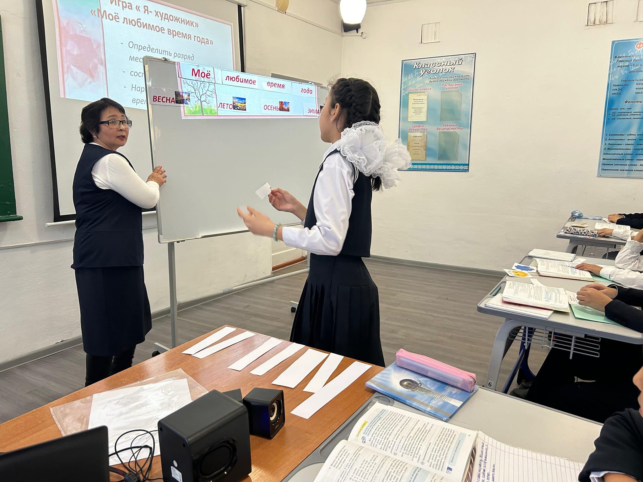 Апталық аясында жоспарға сай Балганбаева Гулия Аргынгасовна 6 "Б" сыныбында "Моё любимое время года" тақырыбында ашық сабақ өткізді. Сабақта жаңа технологиялар, қызықты ойындар, сергіту сәтті орындалды. Сабақтың әр кезеңі оқушылар үшін тиімді ойластырылған. Тапсырманы орындау барысында оқушылар ойларын ашық айтып, сабаққа белсене қатысты.Сабақ жоғары деңгейде өткізілді.