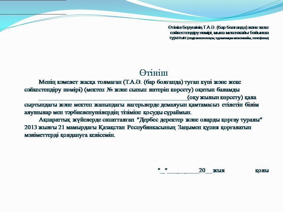 13 июль 2022 100 1 2 3 4 5 Қала сыртындағы және мектеп жанындағы лагерьлерде демалу үшін құжаттар қабылдау және жолдама беру