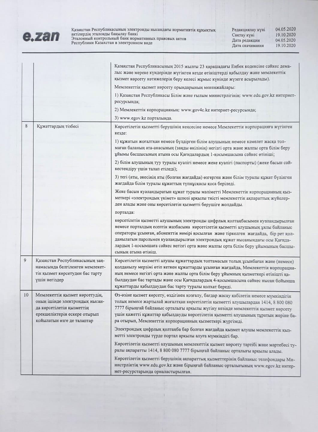 » » » "Негізгі орта, жалпы орта білім туралы құжаттардың телнұсқаларын беру"