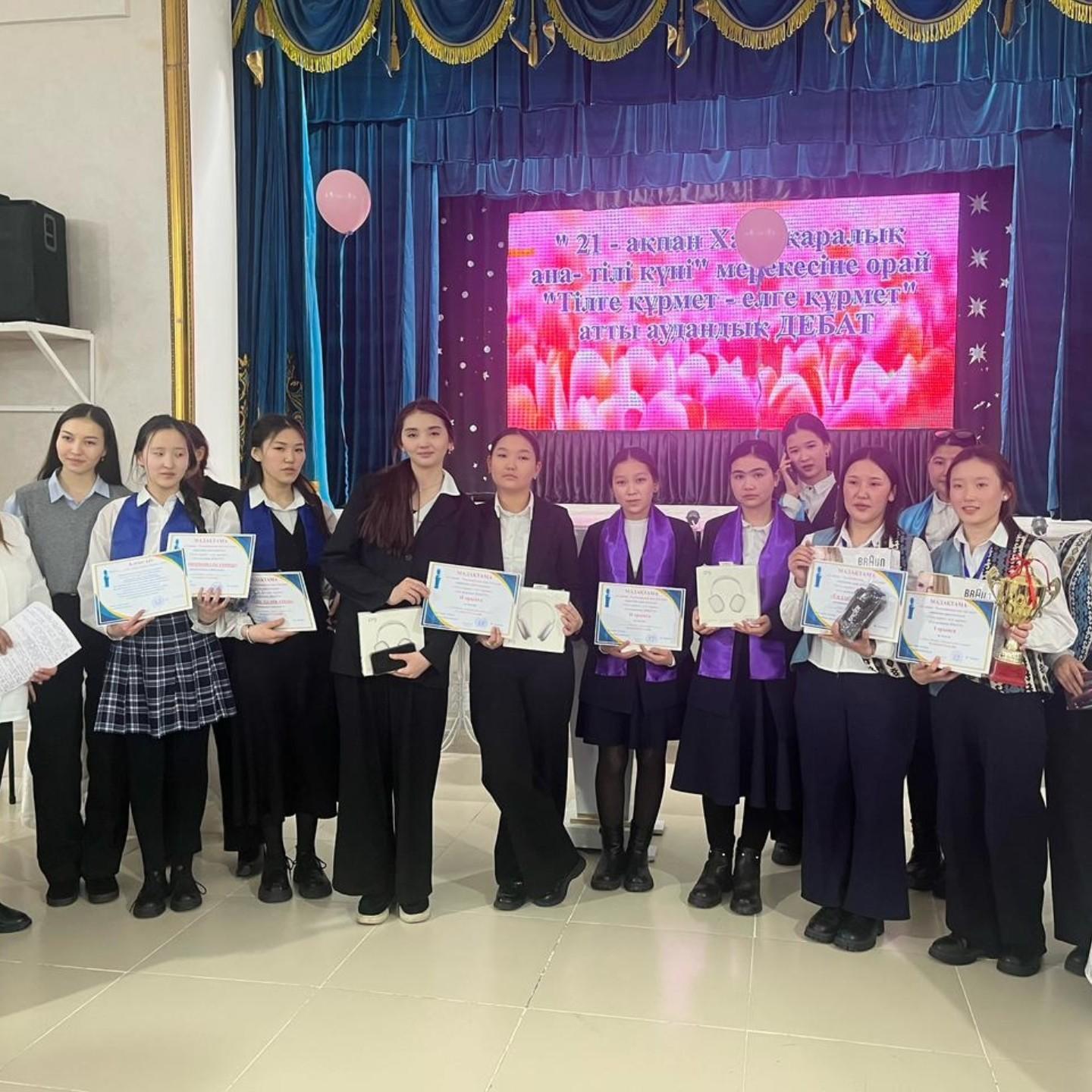 "Мәдениет және тілдерді дамыту" бөлімінің ұйымдастыруымен «21 ақпан- Халықаралық ана-тілі күні» мерекесіне орай өткізілген «Тілге құрмет-елге құрмет» атты аудандық дебатқа мектебіміздің оқушылары Махмут Әмина және Мусин Нұрай қатысып, жүлделі II орынға ие болды. Жетекшісі: Кеңесова Жібек Ғанийқызы.