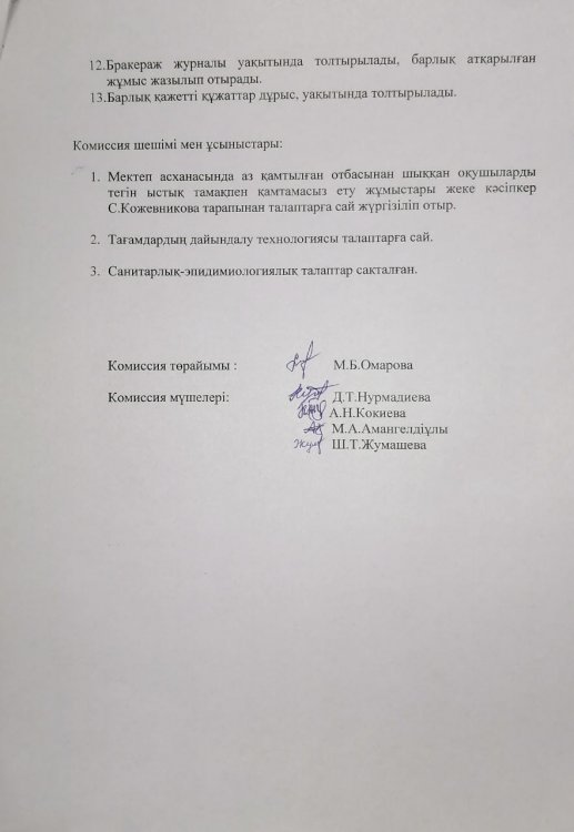 Бракераж комиссиясының тексеру актісі » «Георгиевка орта мектебі» КММ