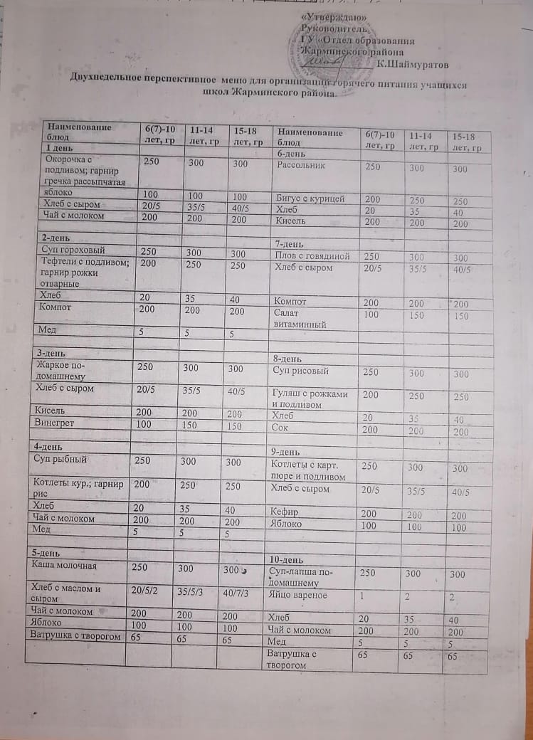 2023 ЖЫЛҒА АРНАЛҒАН ПЕРСПЕКТИВТІ МЕНЮ » «Георгиевка орта мектебі» КММ