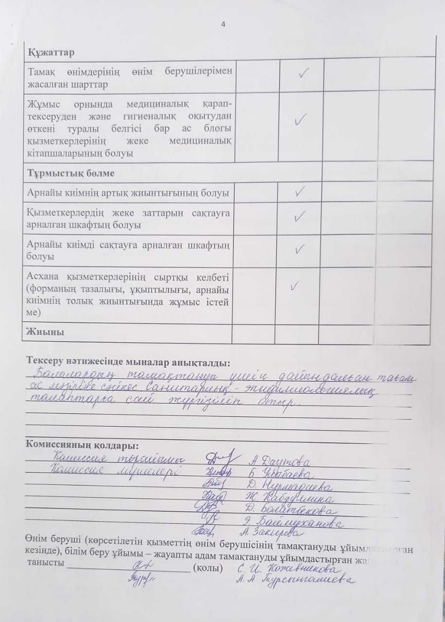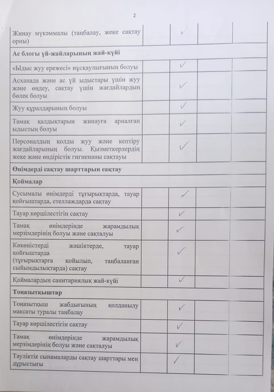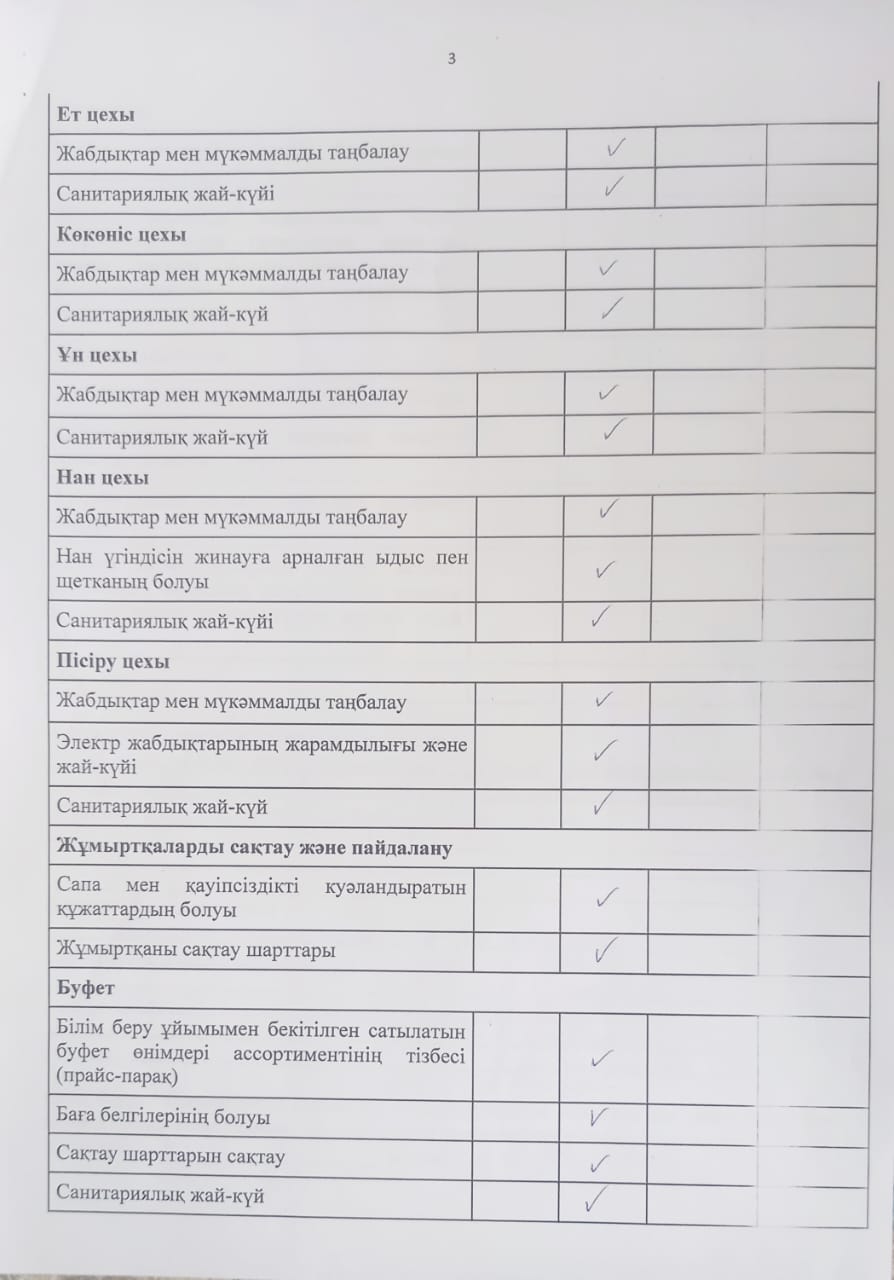 Бракераж комиссиясының тексеру актісі » «Георгиевка орта мектебі» КММ