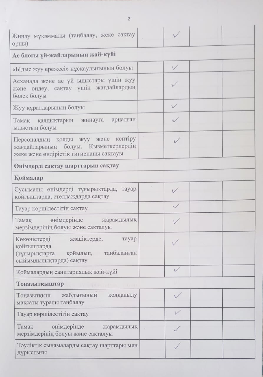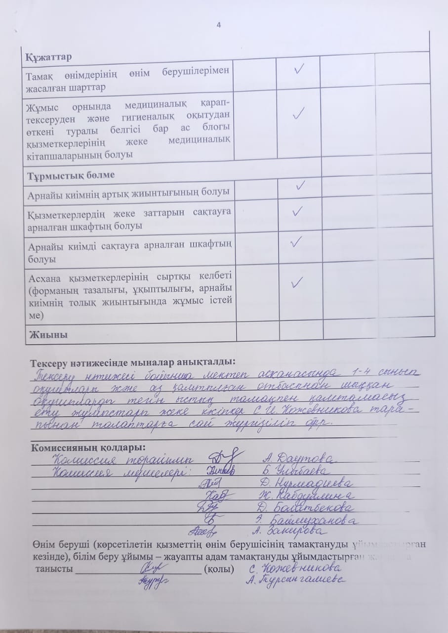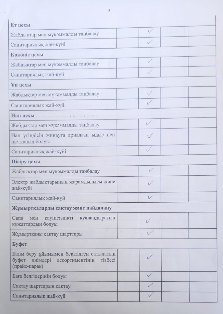 Бракераж комиссиясының тексеру актісі » «Георгиевка орта мектебі» КММ