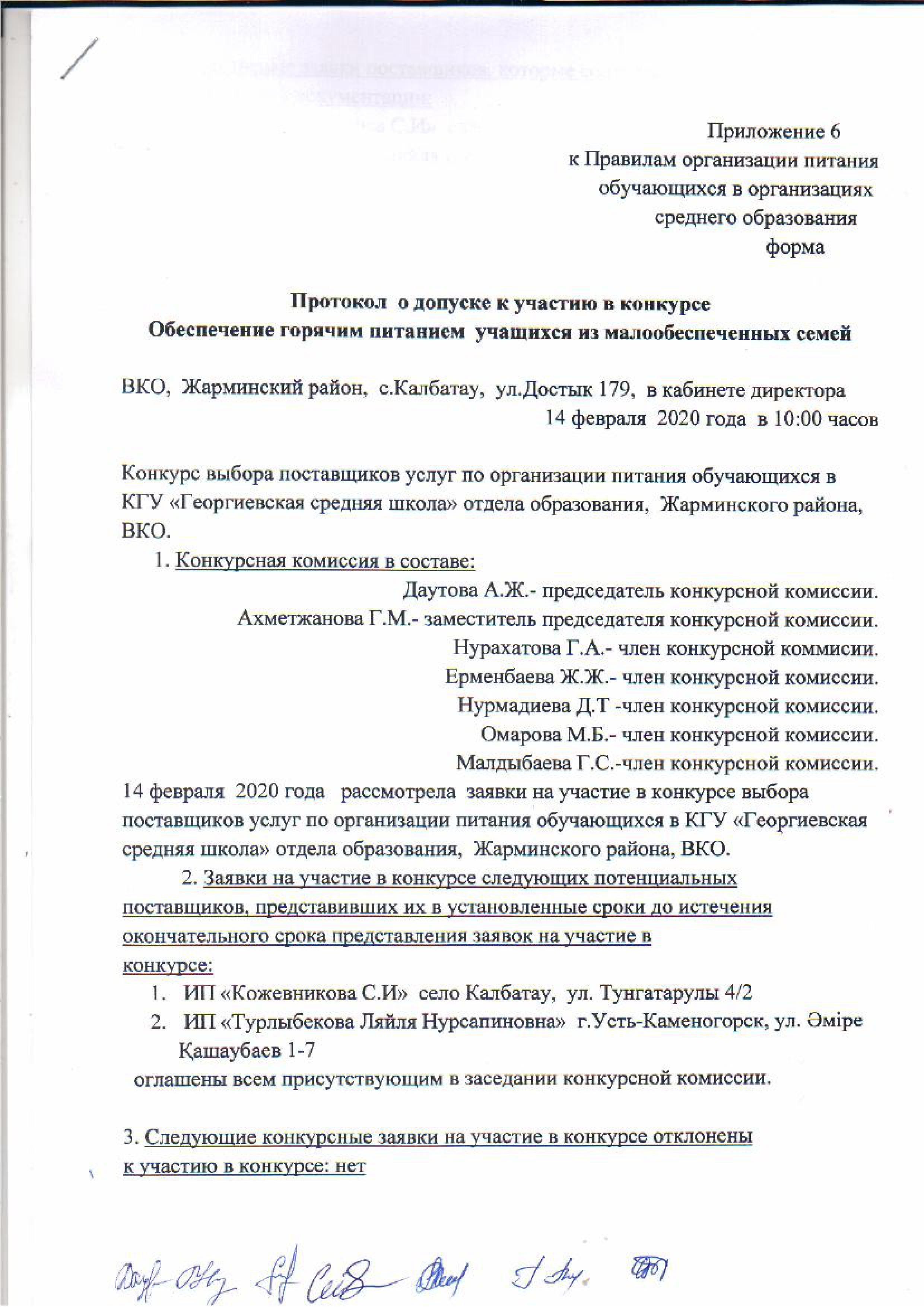 Протокол о допуске » «Георгиевка орта мектебі» КММ