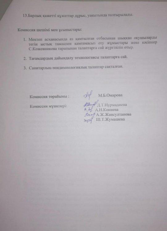 Бракераж комиссиясының тексеру актісі » «Георгиевка орта мектебі» КММ