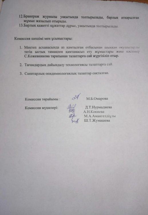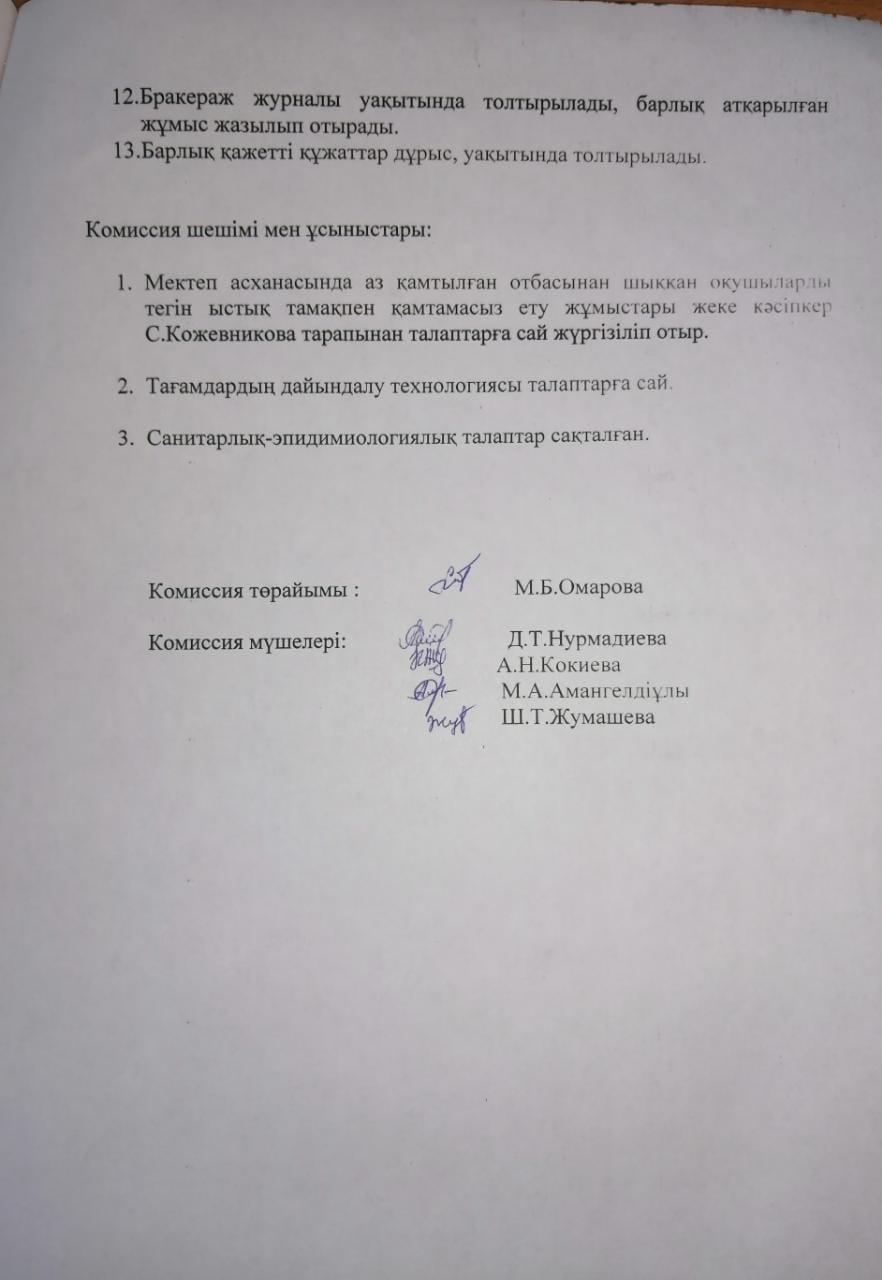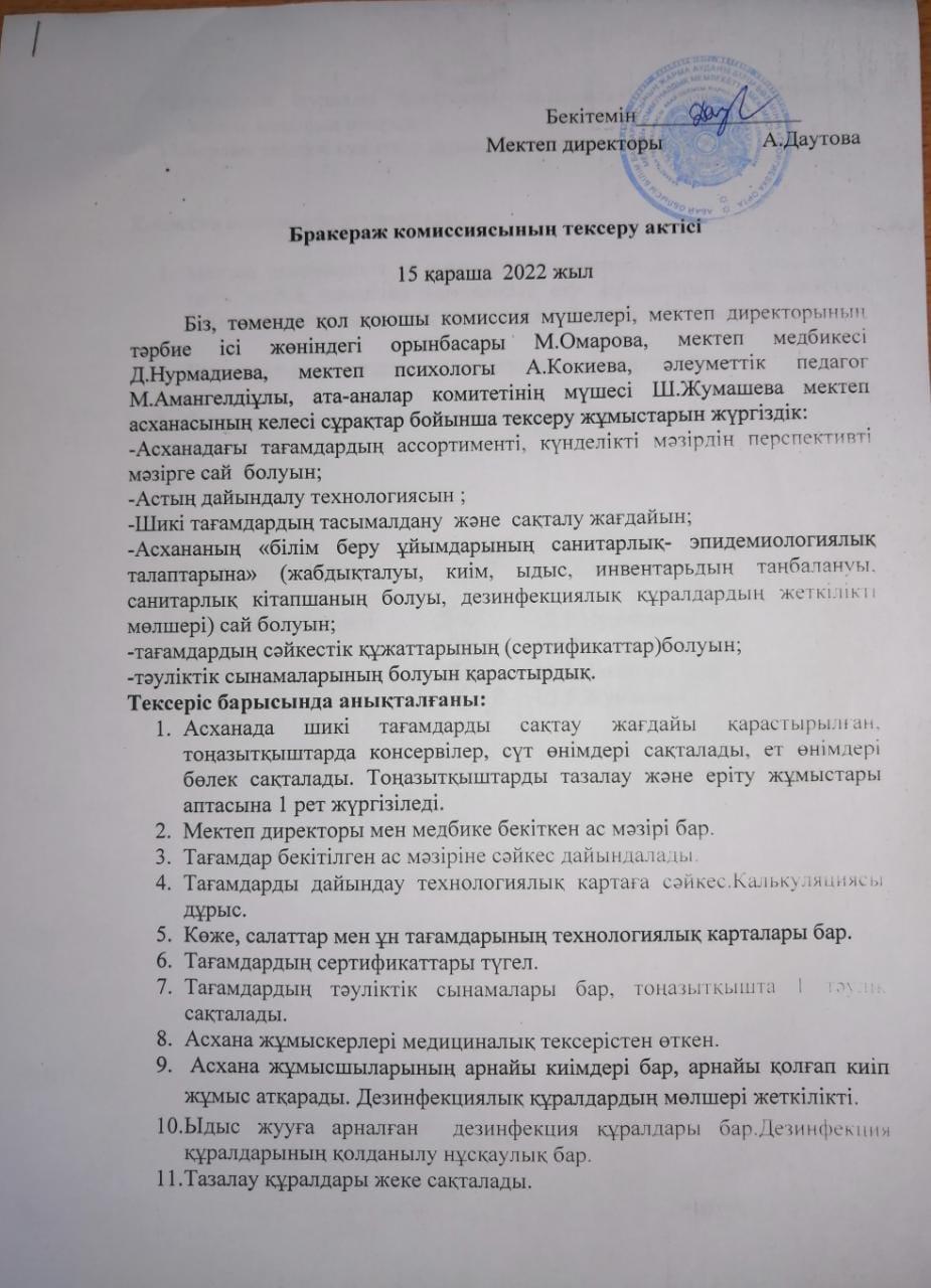 Бракераж комиссиясының тексеру актісі » «Георгиевка орта мектебі» КММ