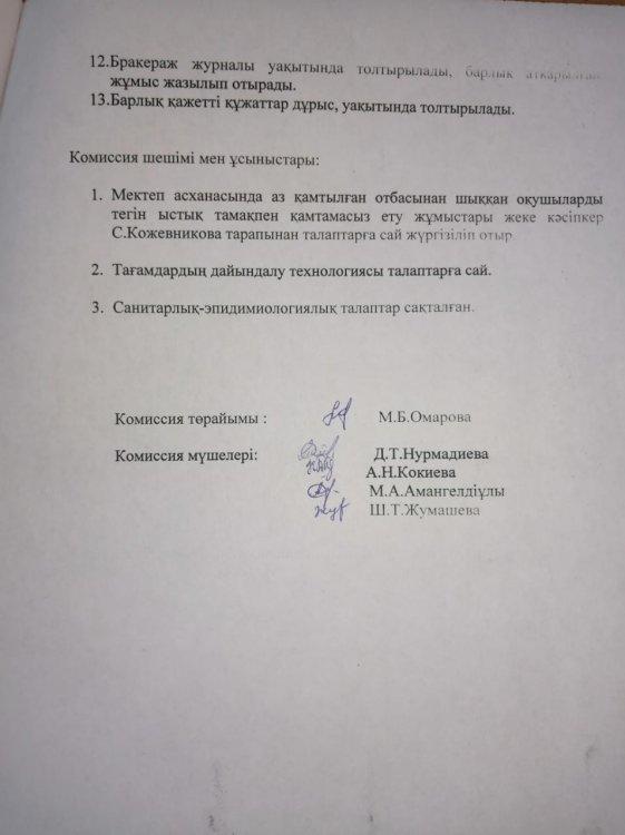 Бракераж комиссиясының тексеру актісі » «Георгиевка орта мектебі» КММ