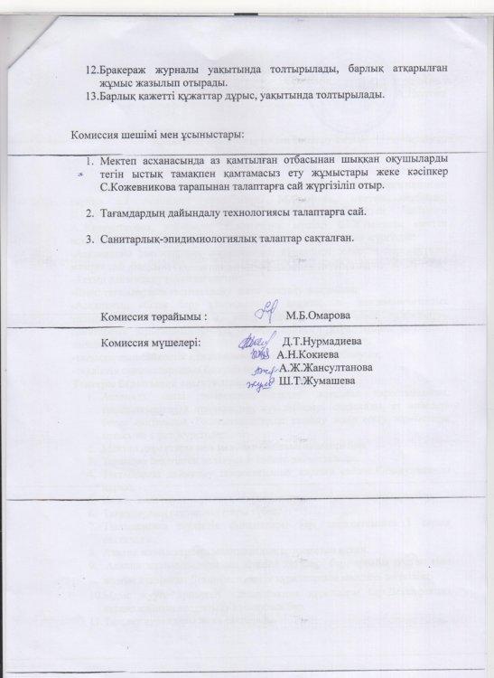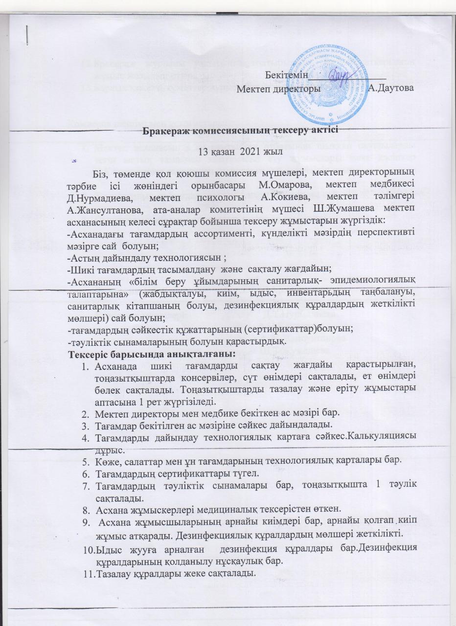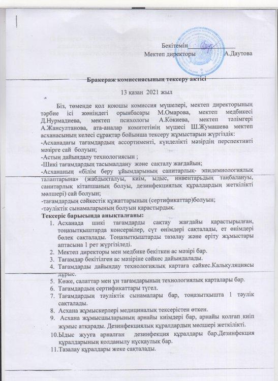 » » » Тегін ыстық тамақпен қамтамасыз етуге дайындығын тексеру актісі