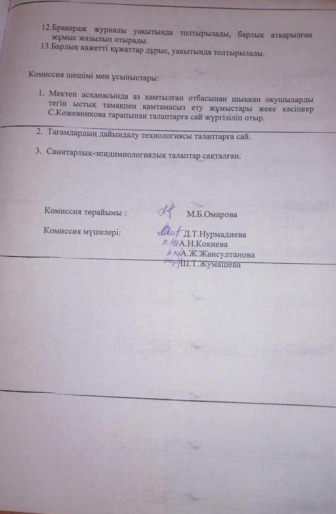 » » » Тегін ыстық тамақпен қамтамасыз етуді тексеру актісі