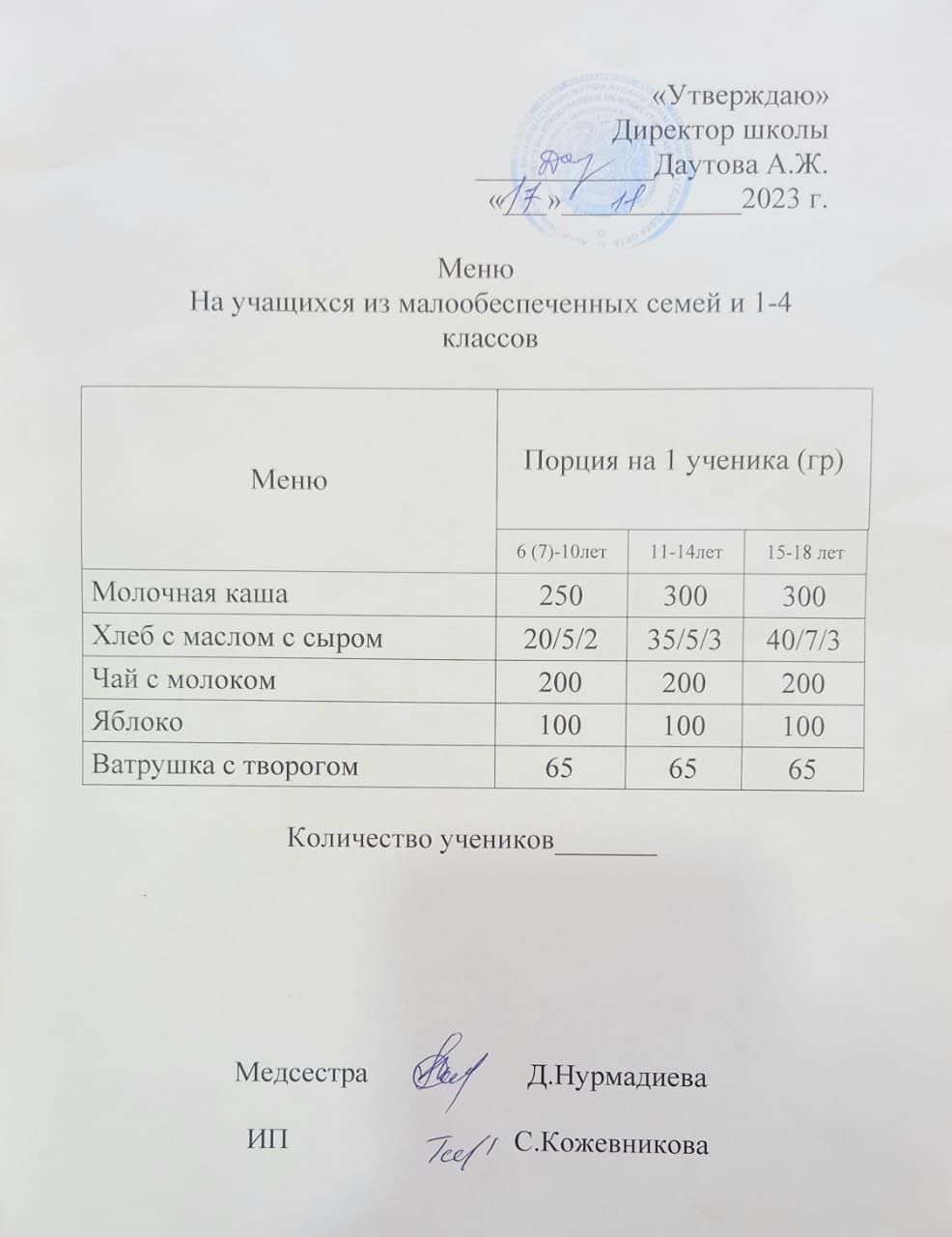 06 октябрь 2023 Ас мәзірі