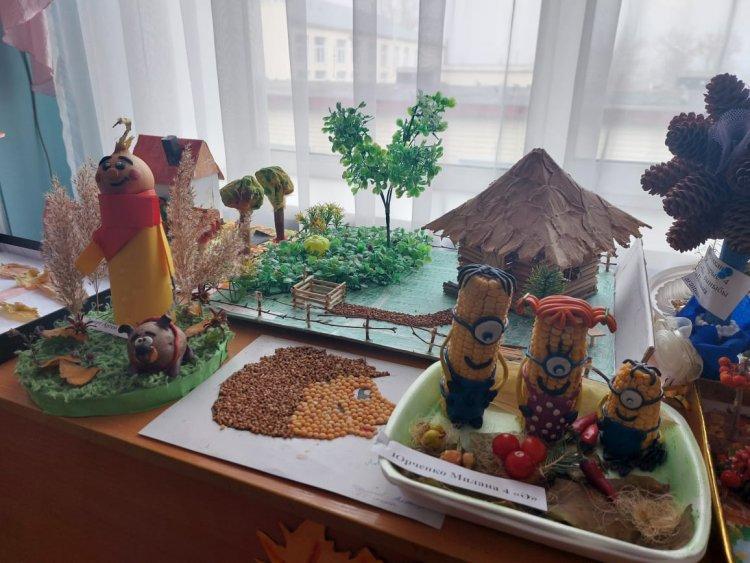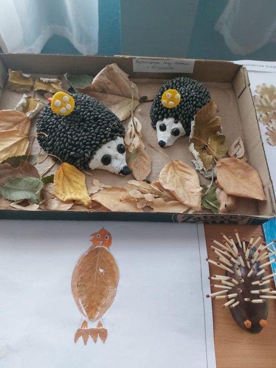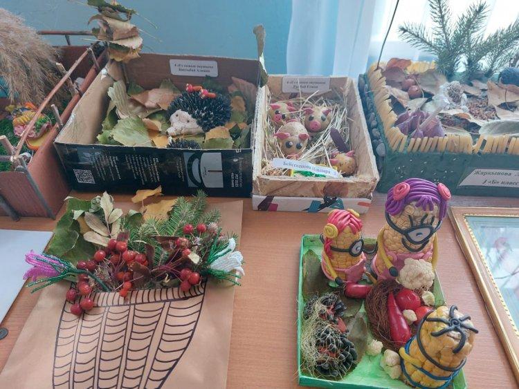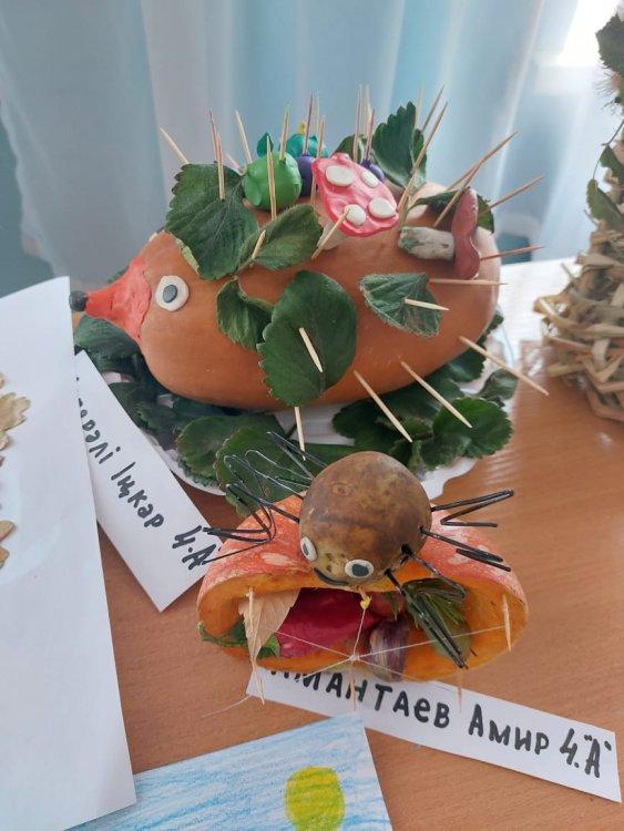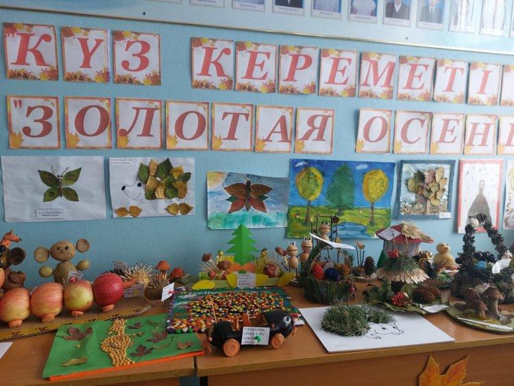 Мектебімізде "Арайлы Алтын күз" апталығы аясында 1-4сынып оқушылары "Күз кереметі" тақырыбындағы тамаша туындыларымен көрме ұйымдастырды. Көрмеге күзгі өнімдер арқылы керемет идеялармен жасалған жұмыстар қойылды.