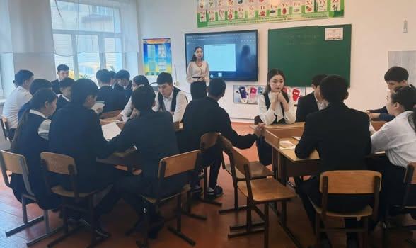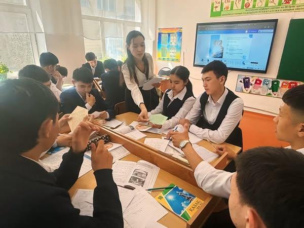 23 апреля в рамках недели молодых специалистов ” Жас ұстаз-жарқын болашақтың бастауы“ учитель казахского языка и литературы Кенжебекова Айдана Айдынқызы провела открытый урок в 10 ”Б “ классе на тему ”Архитектура Великой степи". Каждый этап урока был организован методически, использовались рациональные методы и платформы, карточки. В частности, методом ”Пирамида“ была предсказана тема урока и продолжена такими платформами, как ”Learning apps“, ”WordWall", «Canva».