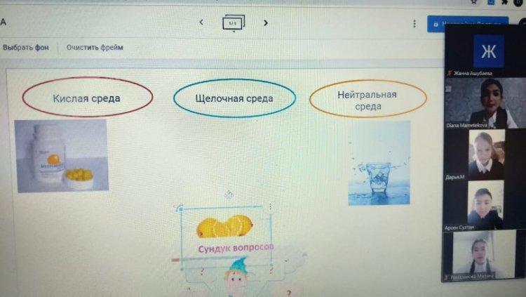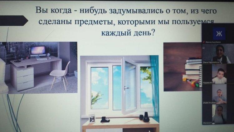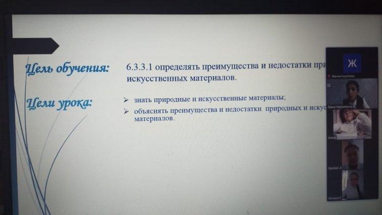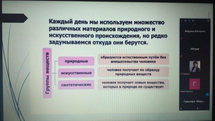 11 декабря 2020 года в КГУ «Георгиевская средняя школа» в завершении недели учителей естественного цикла в режиме онлайн в 6 «А» классе урок естествознания на тему «Образование и получение веществ» провела Болатова Диана Талгатовна. Урок был очень насыщенный: начался с проблемного вопроса. Вопросы и задания были взяты из жизни. Большое внимание уделялось экологическому воспитанию. Закрепление проводилось в игровой форме. Для рефлексии использовалось приложение Jeam board.