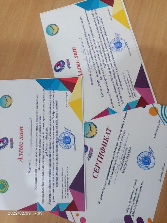 9 февраль күні өткен Жарма аудандық жайдарман ойынында 1/4 ширек финалдық ойынына жолдама алған "Георгиевка орта мектебі" КММ-нің командасы сертификатпен, жетекшілері А.О.Ұлыбаева мен Д.Е.Қадылбеков Алғыс хатпен марапатталды.