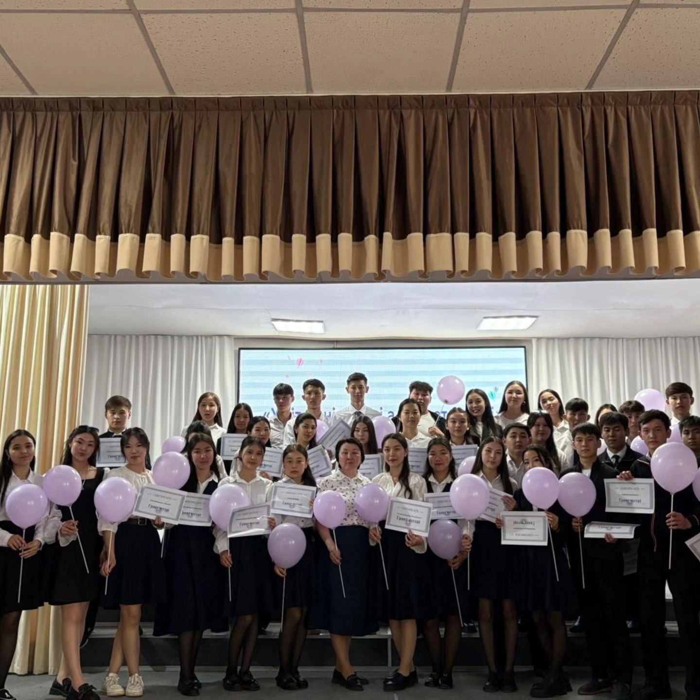 Мектеп психологтары Айгерим Ахметова  мен @balnur.k44 акт залында түлектерге қолдау көрсетіп, мотивация беріп  тренинг жаттығуларын өткізді. Одан соң ұстаздардың шынайы құттықтаулары мен жылы тілектерінен құралған әсерлі бейнежазба көрсетілді.