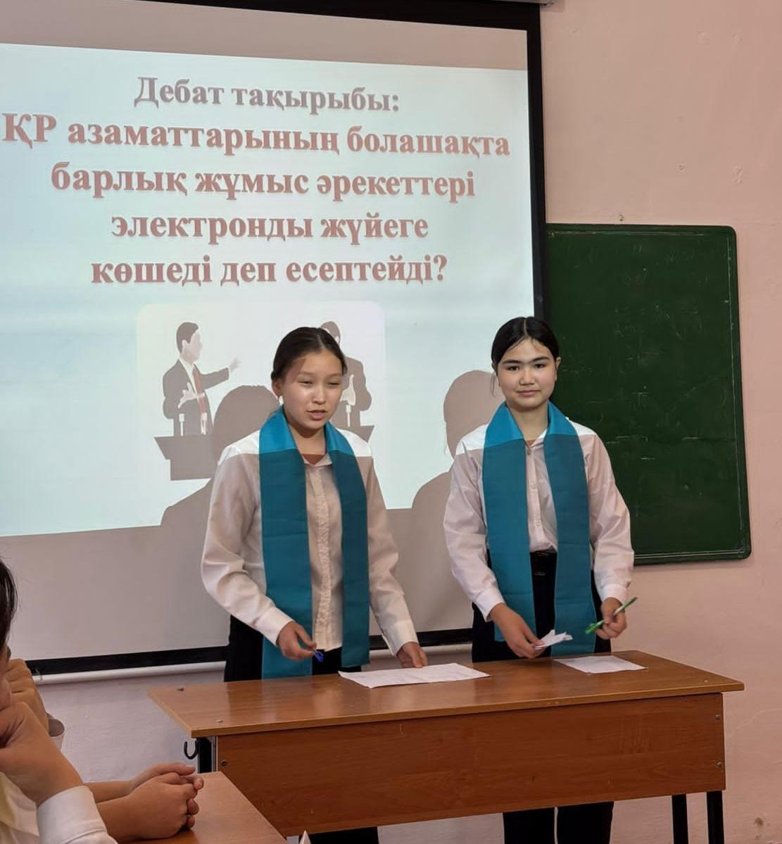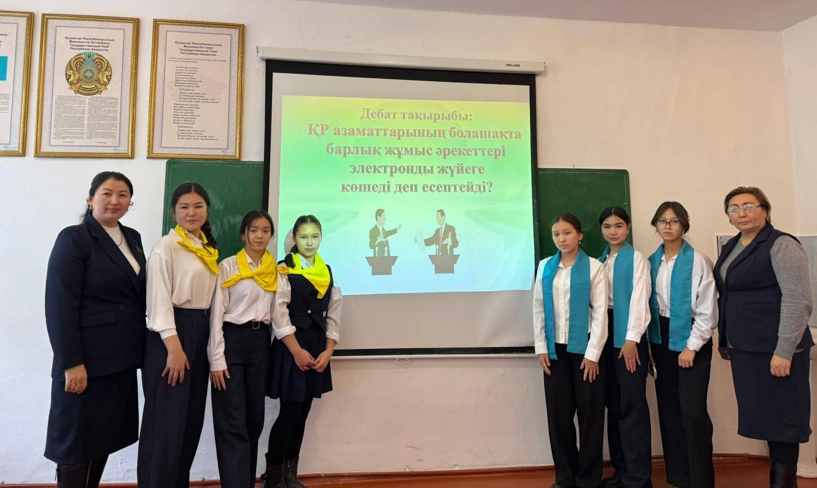 Мектебімізде «Ұшқыр ой алаңы» жобасы аясында дебат фракция тьютері және "Өзін-өзі басқару" ұйымы жоспарға сәйкес «ҚР азаматтарының болашақта жұмыс әрекеттері электронды жүйеге көшеді деп есептейді» тақырыбында дебат ойыны өткізілді. Дебатқа әр фракция мүшелері қатысты, қатысушылар өз ойларын ортаға салып дәлелдеді.