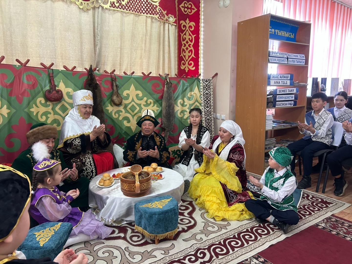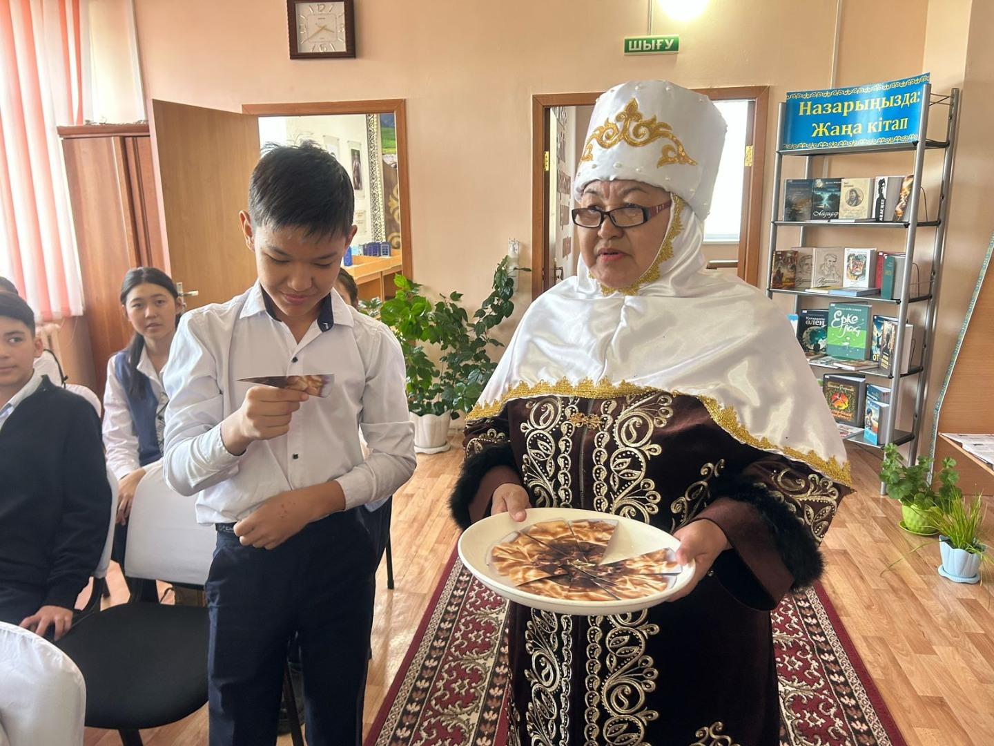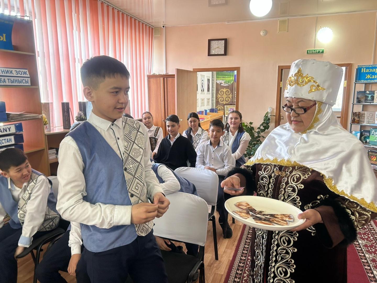 Бүгін мектебіміздің 7 “В” сынып оқушылары аудандық кітапхананың ұйымдастыруымен өткізілген 17 наурыз “Ұлттық киімдер күні” атты іс-шараға қатысты.