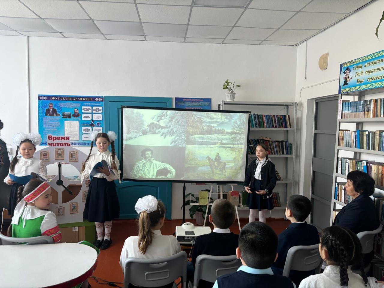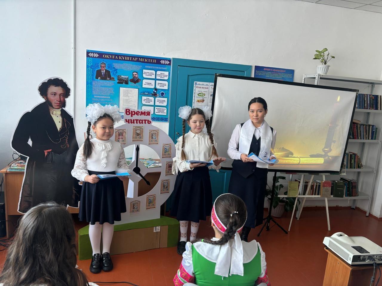 Кітапхананың оқу залында А. С. Пушкиннің шығармалары бойынша оқырмандар байқауы өткізілді.