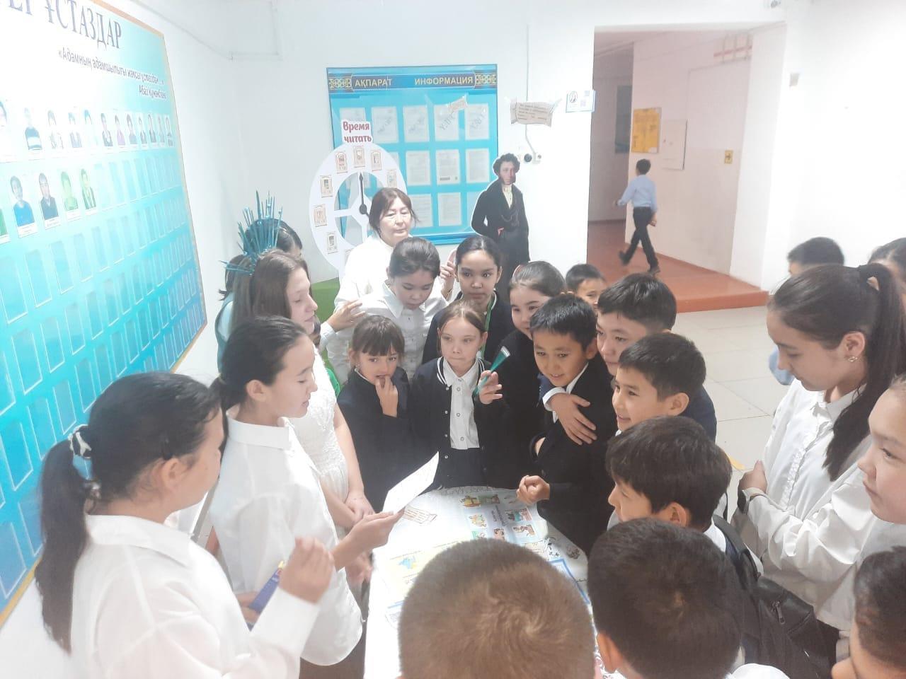 Орыс тілі мен әдебиеті апталығының әр күні қызықты ойындар өткізу жоспарланған. Бүгін тәжірибелі мұғалім Г.М.Ахметжанованың ұйымдастыруымен "Лексика" күні өтті. Оқушылар үзіліс уақытында ойын ойнады.Кітапхананың оқу залында А. С. Пушкиннің шығармалары бойынша оқырмандар байқауы өткізілді. Байқауға 5-6 сынып оқушылары белсенді қатысты. Бұл іс-шараға жас маман А.Ә.Әскербекова жауапты болды. Байқаудың барлық қатысушылары тиісті деңгейде өнер көрсетіп, жоғары шеберлік көрсетті...