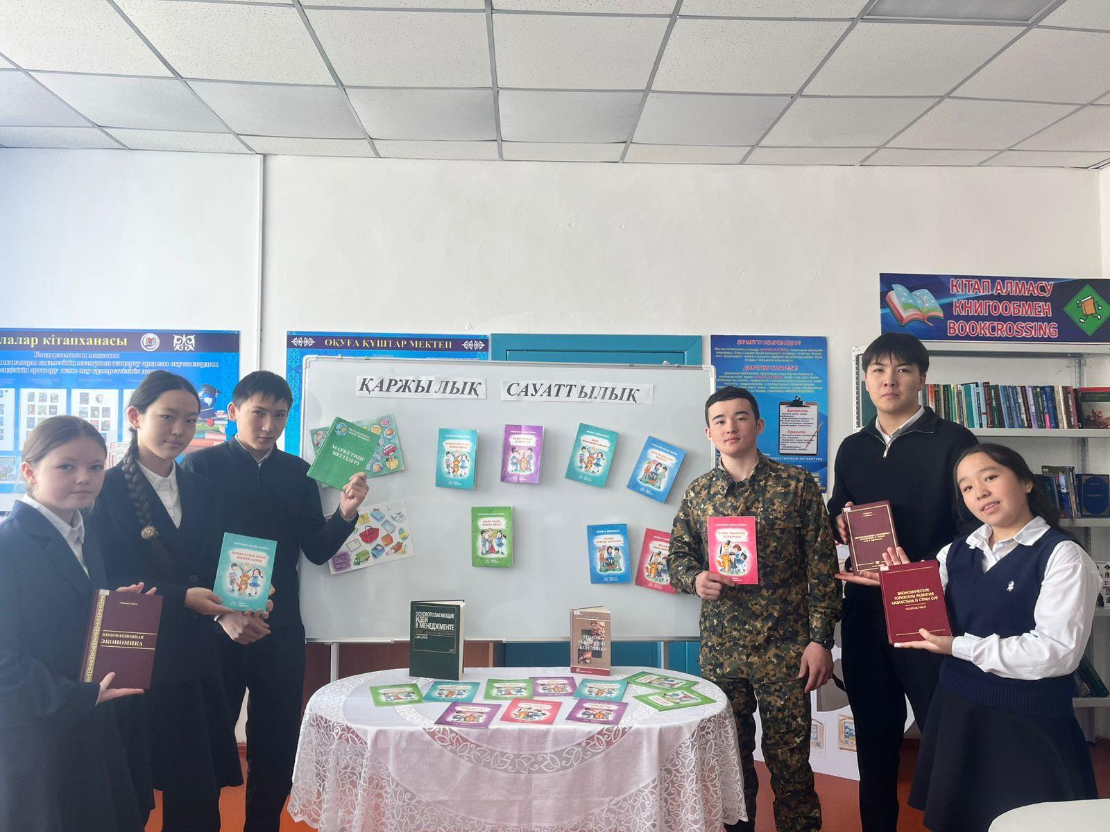 Бүгін мектебімізде Қазақстан Республикасы мониторинг агенттігінің тапсырмасы бойынша қаржылық сауаттылықты арттыру және жас ұрпақты қаржылық мәдениетке баулу мақсатында құрылған жоспарға сай мектеп оқушыларына арналған кітап көрмесі ұйымдастырылды.