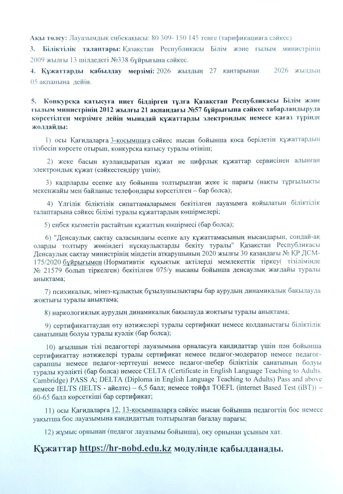 Математика пәні мұғалімінің бос лауазымына орналасуға конкурс