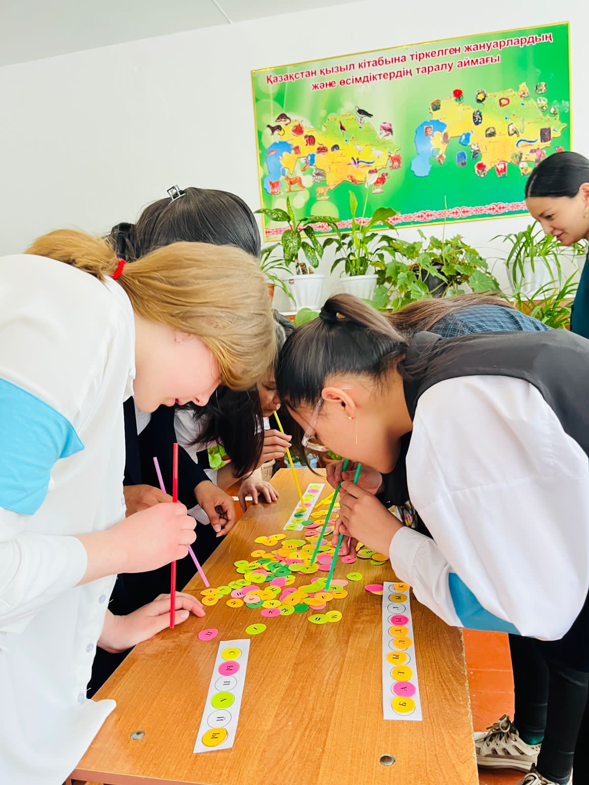 12 мамыр күні «Георгиевка орта мектебі» КММ–де мектеп психологтары А.Кокиева мен Б.Қабидоллаеваның жоспарына сай жағымсыз күйден арылу, өзін еркін сезінуге көмектесу, жағымды психологиялық ахуал қалыптастыру мақсатында 9 «А» сынып оқушыларымен «Мен сүйіспеншілікке толымын» тақырыбында жұмыс жүргізілді. Жұмыс барысында «Мейірімді эмоция», «Адасқан әріптер», «Аддамс отбасы», «Көңілді шарлар» атты ойындар ойнатылды.