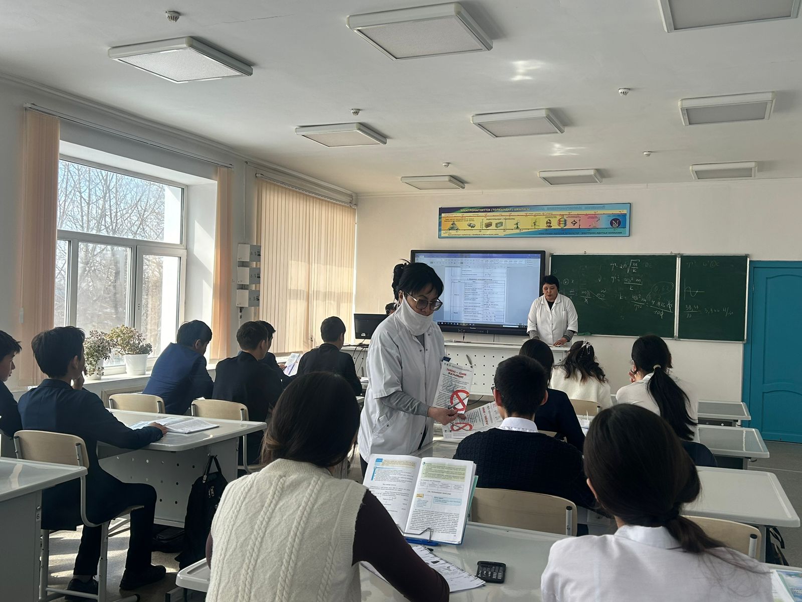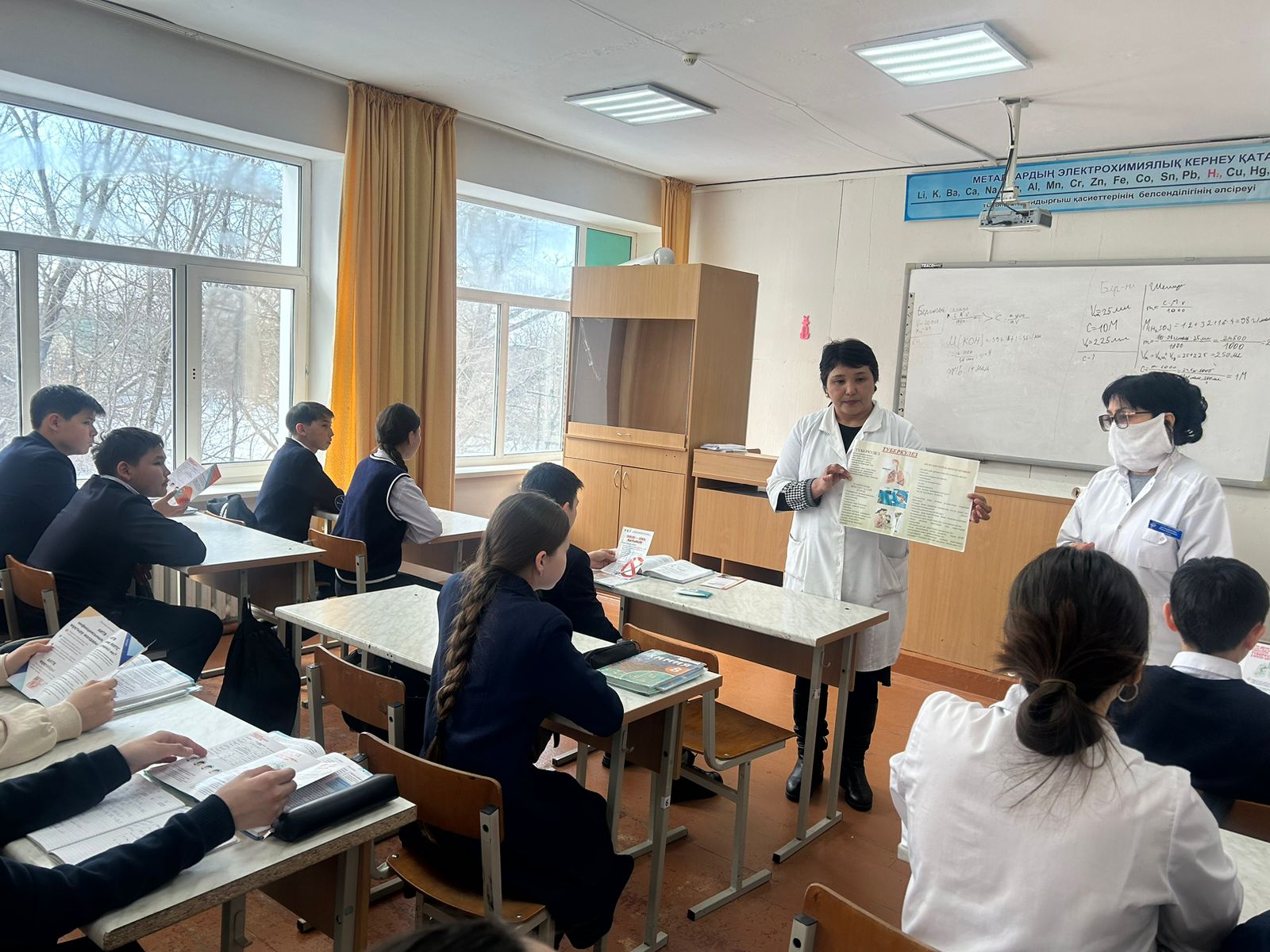Бастауыш сыныптар арасында туберкулез ауруының алғашқы белгілері туралы , 8-11 сыныптар арасында әңгіме-сұхбат жүргізіліп, брошюралар таратылды. Мектеп медбикесі Д. Нұрмадиева, "Азат" жанұялық амбулаторияның дәрігері А.Совитұлы, медбике М.Джумадилова мектеп қызметкелерімен 15 жастан асқан окушыларға жылына бір рет флюрографиялық тексеруден өтудің маңызы туралы айтып, пайдалы кеңестер берді.