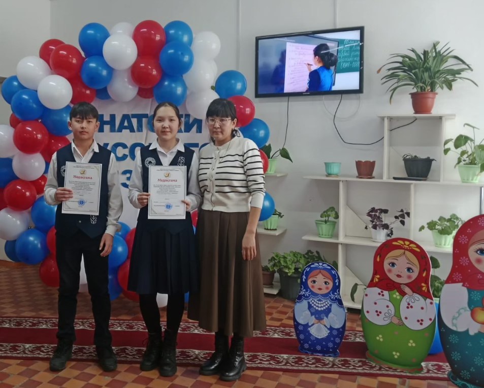 7-8 сынып оқушылары арасында "ЗНАТОКИ РУССКОГО ЯЗЫКА» атты АУДАНДЫҚ сайысы өтті.Сонымен қатар, Айтказыев Ануар мен Русланқызы Жания "ЛУЧШИЙ ИНТЕРПРИТАТОР ТЕКСТА" номинациясымен марапатталды.