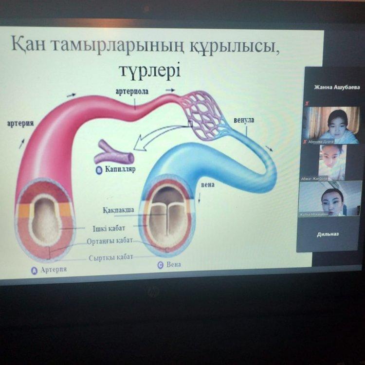 9 декабря 2020 года в КГУ «Георгиевская средняя школа» в рамках недели учителей естественного цикла в режиме онлайн прошёл урок биологии в 8 «Г» классе на тему «Буылтық кұрттардың, ұлулардың буын аяқтылардың және омыртқалылардың жүрегі және қантамырлар құрылысы». Учитель Мұкашева Жайна Назымқанқызы на уроке использовала презентацию, видео для повторения и изучения новой темы. Закрепление материала проходило в виде тестов с использованием игровой методики на учебной платформе Quizizz.com. Дети работали с интересом. В конце урока каждый увидел свой результат.